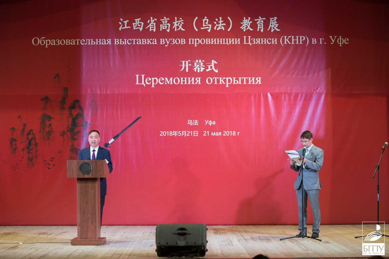 Делегацию от провинции Цзянси возглавил заместитель начальника департамента образования провинции Цзянси господин Е Баолин. Местом проведения выставки стал Башкирский государственный педагогический университет имени Мифтахетдина Акмуллы.