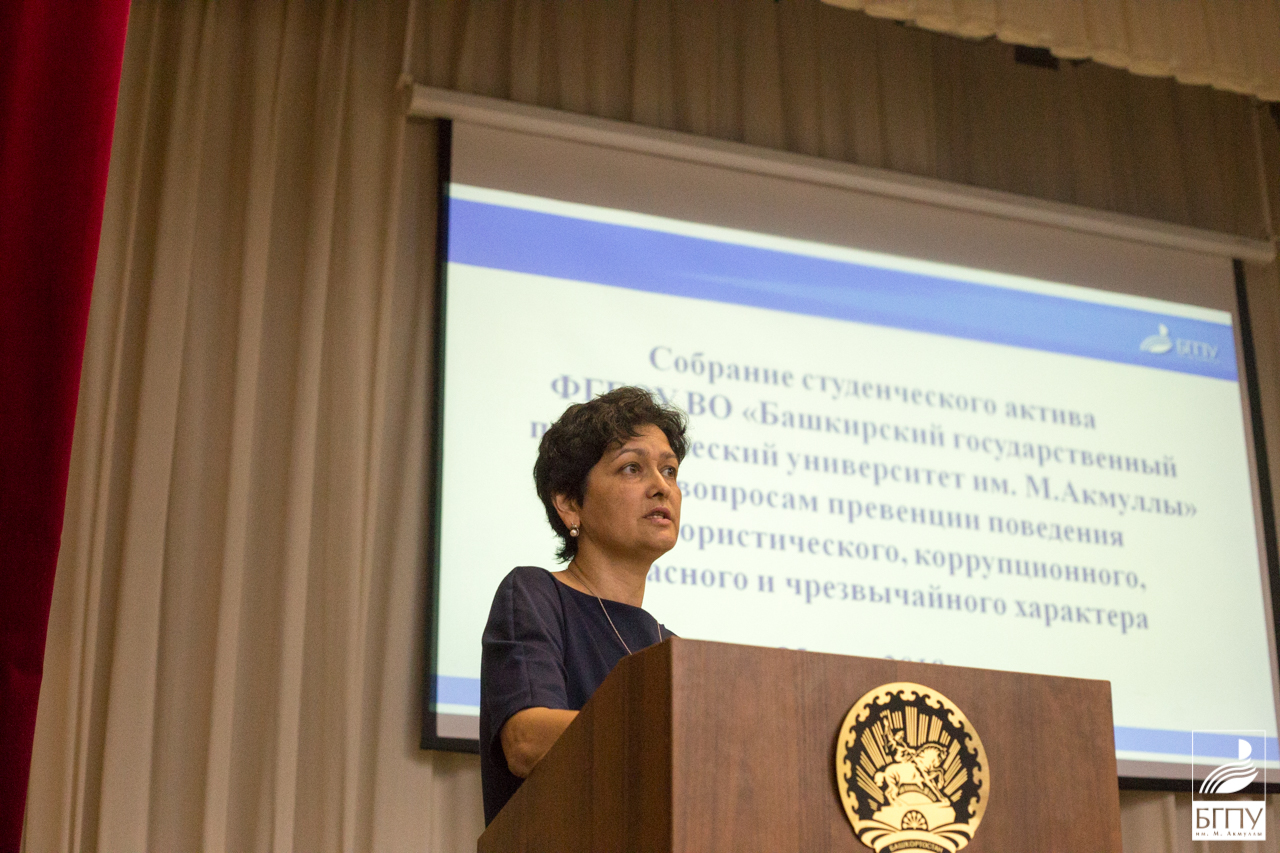 25 мая в БГПУ им. М. Акмуллы состоялось собрание студенческого актива по вопросам превенции поведения террористического, коррупционного, опасного и чрезвычайного характера
