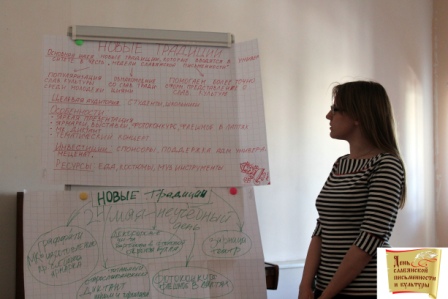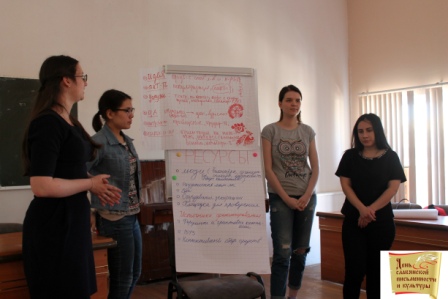 На основе полученных знаний команды студентов доработали свои проекты, составленные на Мировом кафе, а затем представили их остальным участникам. Регламент выступления был суров: 2 минуты на презентацию и 2 минуты на ответы - всё в традициях крупных грантовых форумов. Вячеслав и Роксана указывали сильные и слабые стороны каждого проекта, давали советы по их усовершенствованию.