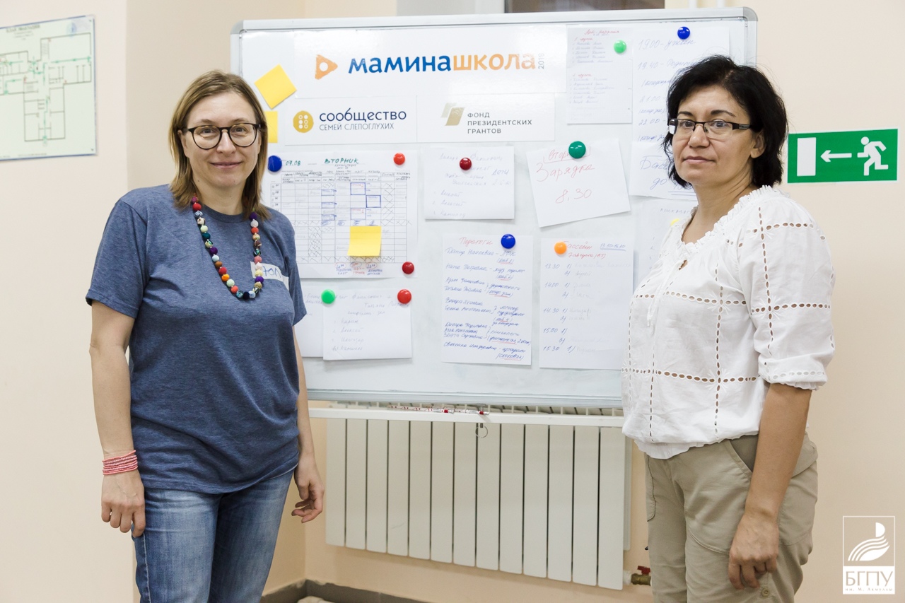 5 августа в Башкортостане стартовал уникальный проект  «Мамина школа», организованный БГПУ им. М. Акмуллы. Наша республика на одну неделю объединила 10 семей из разных уголков страны: Ижевск, Верхняя Пышма, Октябрьск, Оренбург и Уфа. Во всех этих семьях воспитываются дети, которые имеют комплексные нарушения зрения и слуха. Данный проект в Башкортостане был реализован благодаря взаимодействию Межрегиональной благотворительной общественной организации «Сообщество семей слепоглухих» и БГПУ им. М. Акмуллы. Площадкой для проведения школы стал социально-образовательный центр «Салихово» в Чишминском районе республики. Кроме Уфы, в данном проекте участвуют еще три города России: Великий Новгород, Нижний Новгород и Кисловодск. Все участники проекта выбраны неслучайно: организаторами была проведена перепись семей, воспитывающих слепоглухих детей – 10-м выпал уникальный шанс.