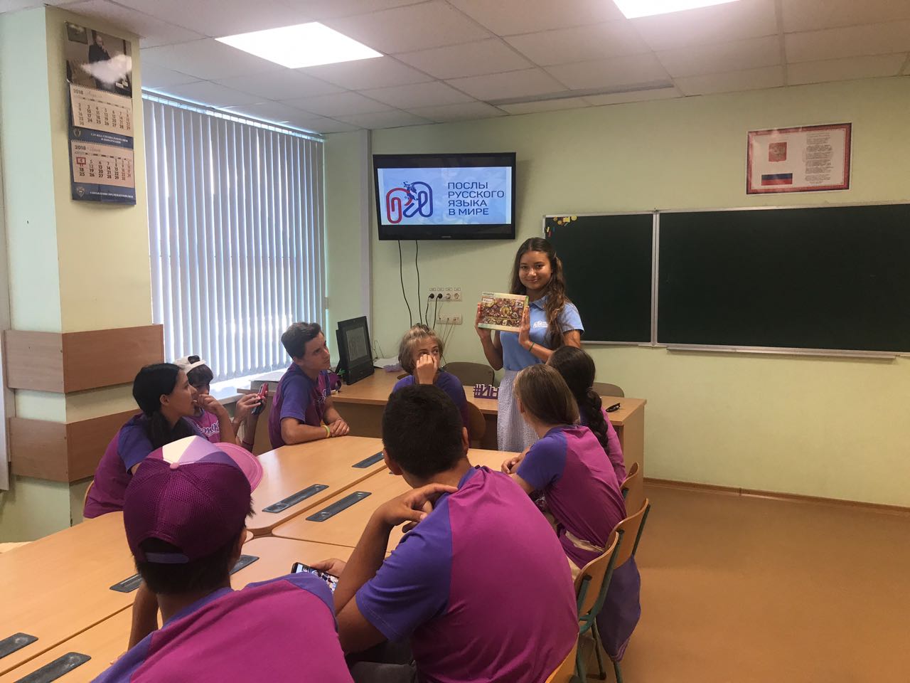 Волонтёры международной программы «Послы русского языка в мире» провели мастер-классы, квесты, флешмобы с ребятами. Также участники программы  познакомились с основами ораторского искусства, языкознания, русскими народными танцами, музыкой, литературой России.