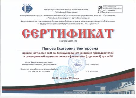 Доценты кафедры общего языкознания Т.Ю. Капишева и Е.В. Попова приняли участие во II Международном Конгрессе преподавателей и руководителей подготовительных факультетов "Довузовский этап обучения в России и мире: язык, адаптация, социум, специальность". Мероприятия проходили 20-21 сентября в г. Москве на двух площадках: в Российском университете дружбы народов и Государственном институте русского языка им. А.С. Пушкина.
