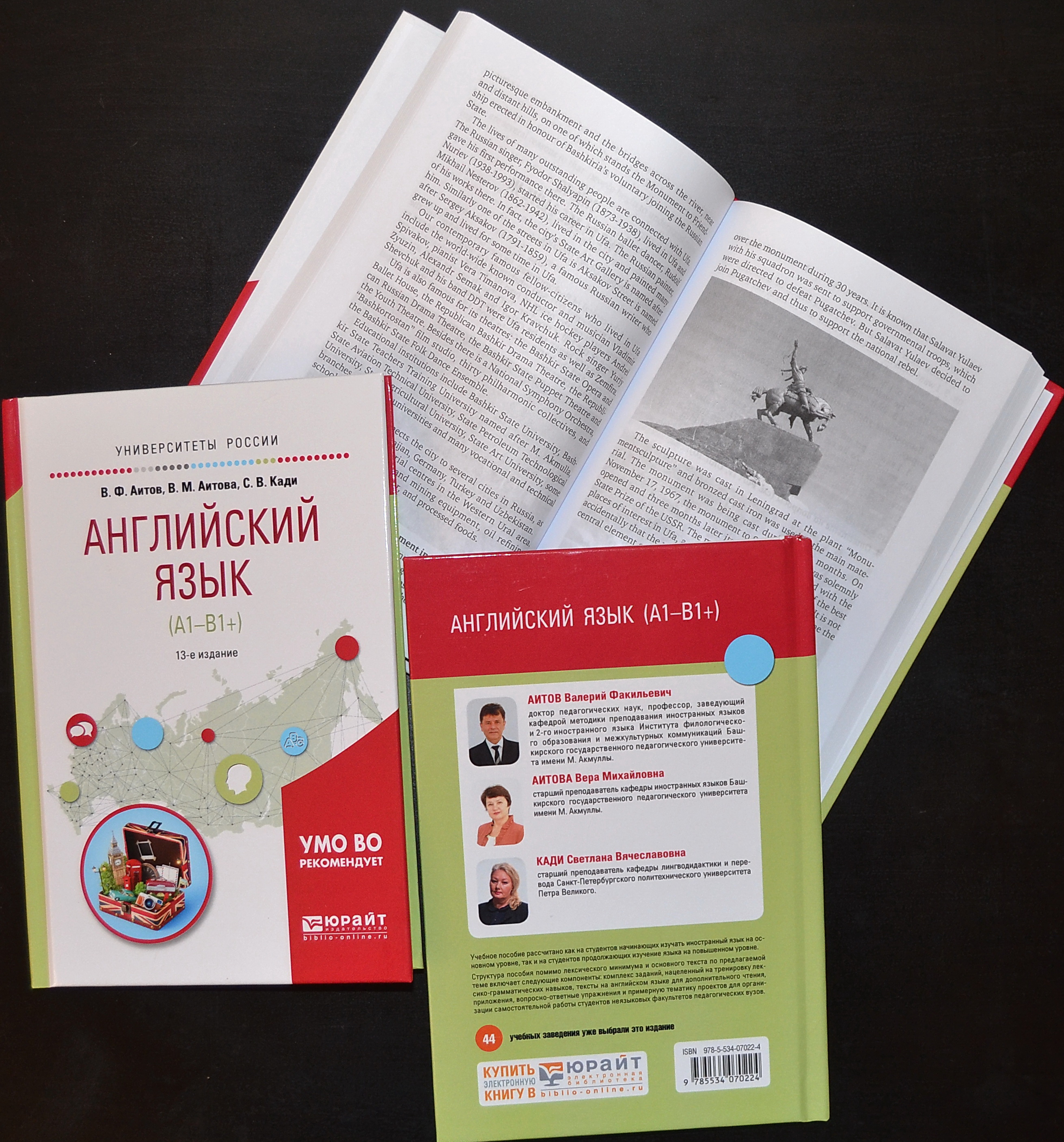 В издательстве Юрайт в Серии «Университеты России» в твердом переплете вышло исправленное и дополненное 13-е издание учебного пособия для академического бакалавриата «Английский язык (А1-В1+)». Пособие рекомендовано  Учебно-методическим отделом высшего образования в качестве учебного пособия для студентов высших учебных заведений, обучающихся по педагогическим, гуманитарным направлениям.