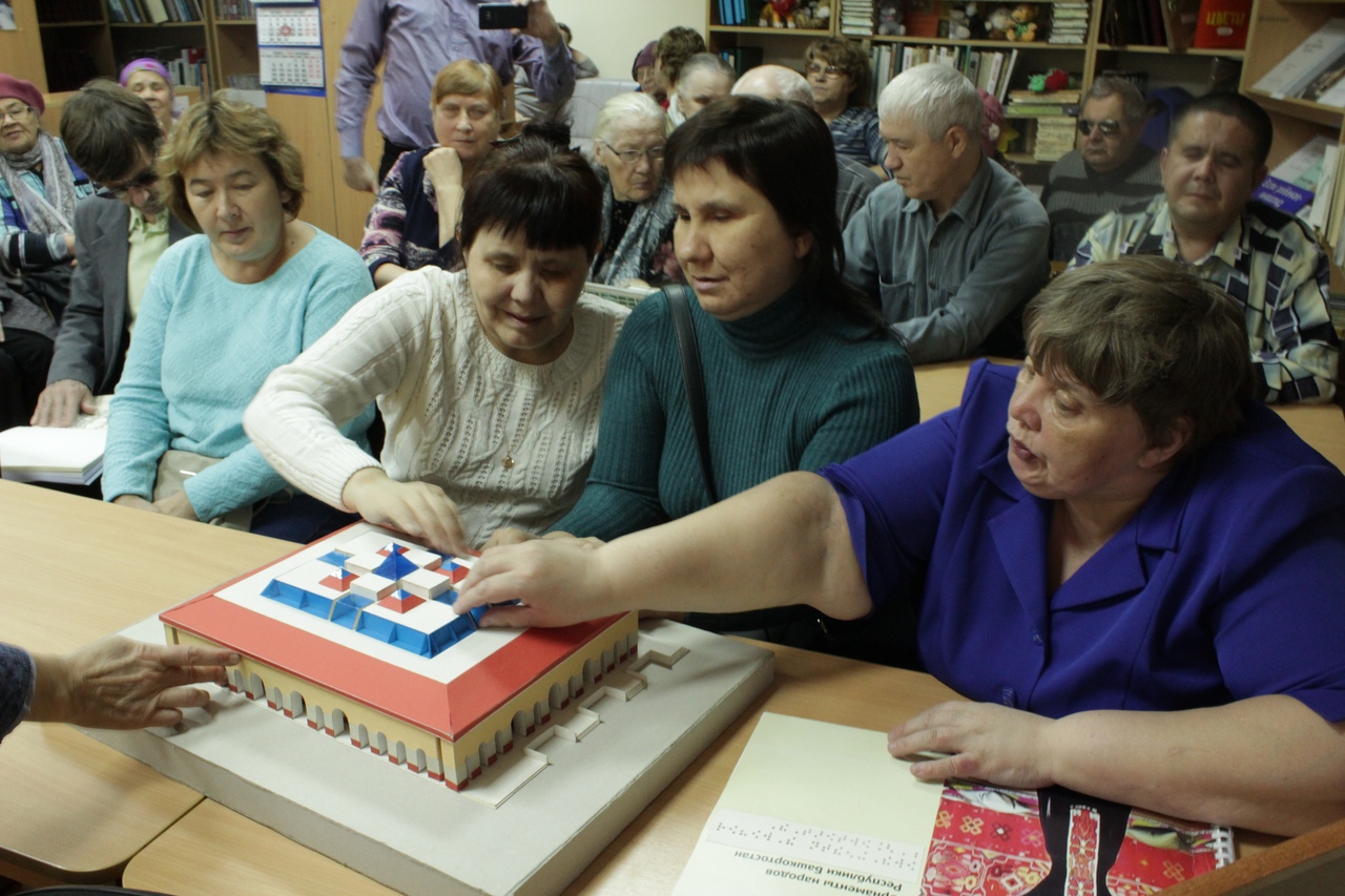 17 октября в рамках месячника Белой трости в Стерлитамакском филиале Библиотеки для слепых состоялась презентация проектов ХГФ "Трогательный Башкортостан" и "Краеведческая мастерская "ВМесте"". Читатели библиотеки познакомились с книжными иллюстрированными новинками и макетами зданий Уфы. Они с интересом отнеслись к предложению волонтеров перевести в макеты наиболее интересные им здания Стерлитамака.