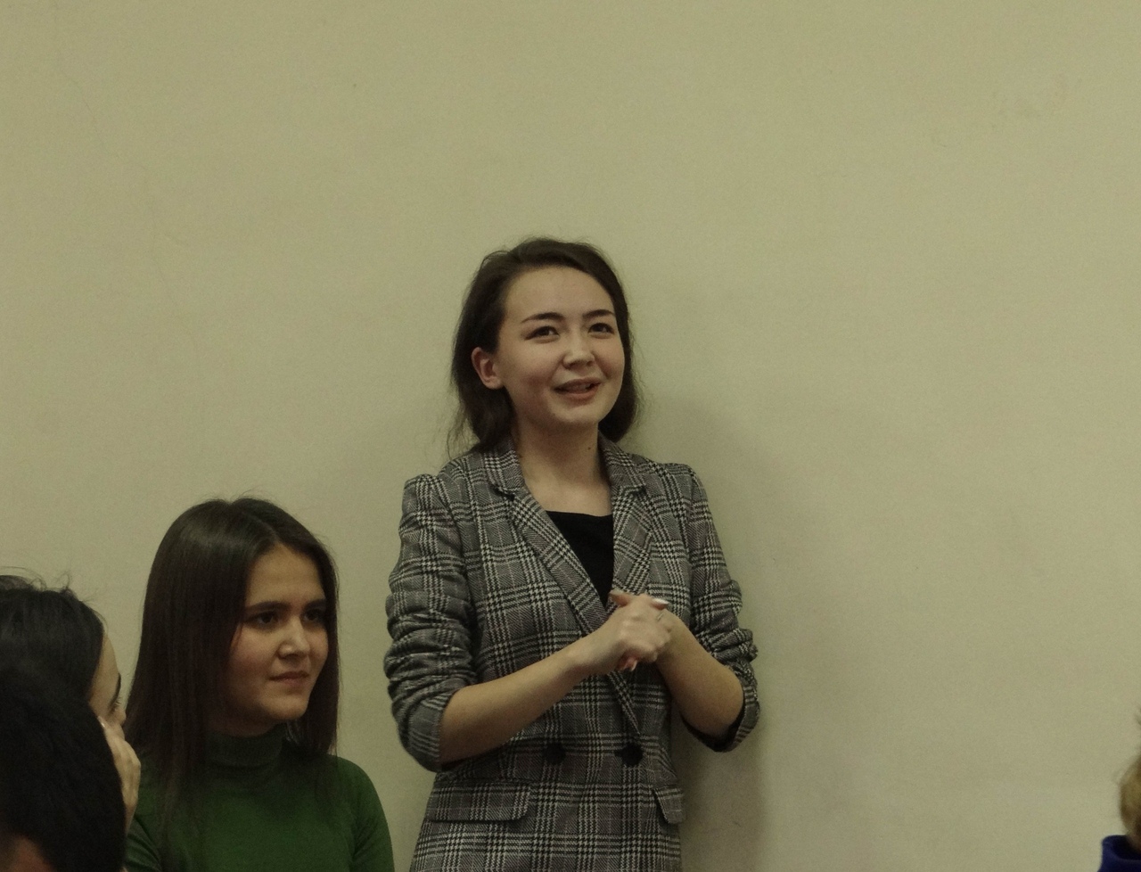 С напутственными словами ко всем участникам этого мероприятия обратилась зав.каф. БЛиК, к.ф.н, доцент Галина Г.Г. Она рассказала студентам интересные моменты творчества и общественной деятельности Ч. Айтматова, отметила актуальность его творчества, также поблагодарила студентов-организаторов за проделанную работу и пожелала всем успехов.