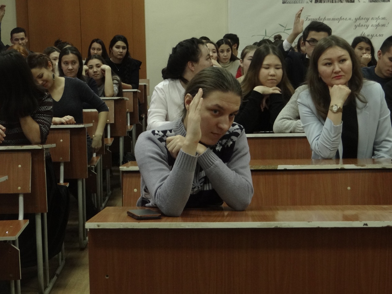 С приветственным словом выступил председатель Союза писателей РБ, доцент кафедры башкирской литературы и культуры Заки Арсланович Алибаев. В организации встречи активно принимали участие профессорско-преподавательский состав и студенты.