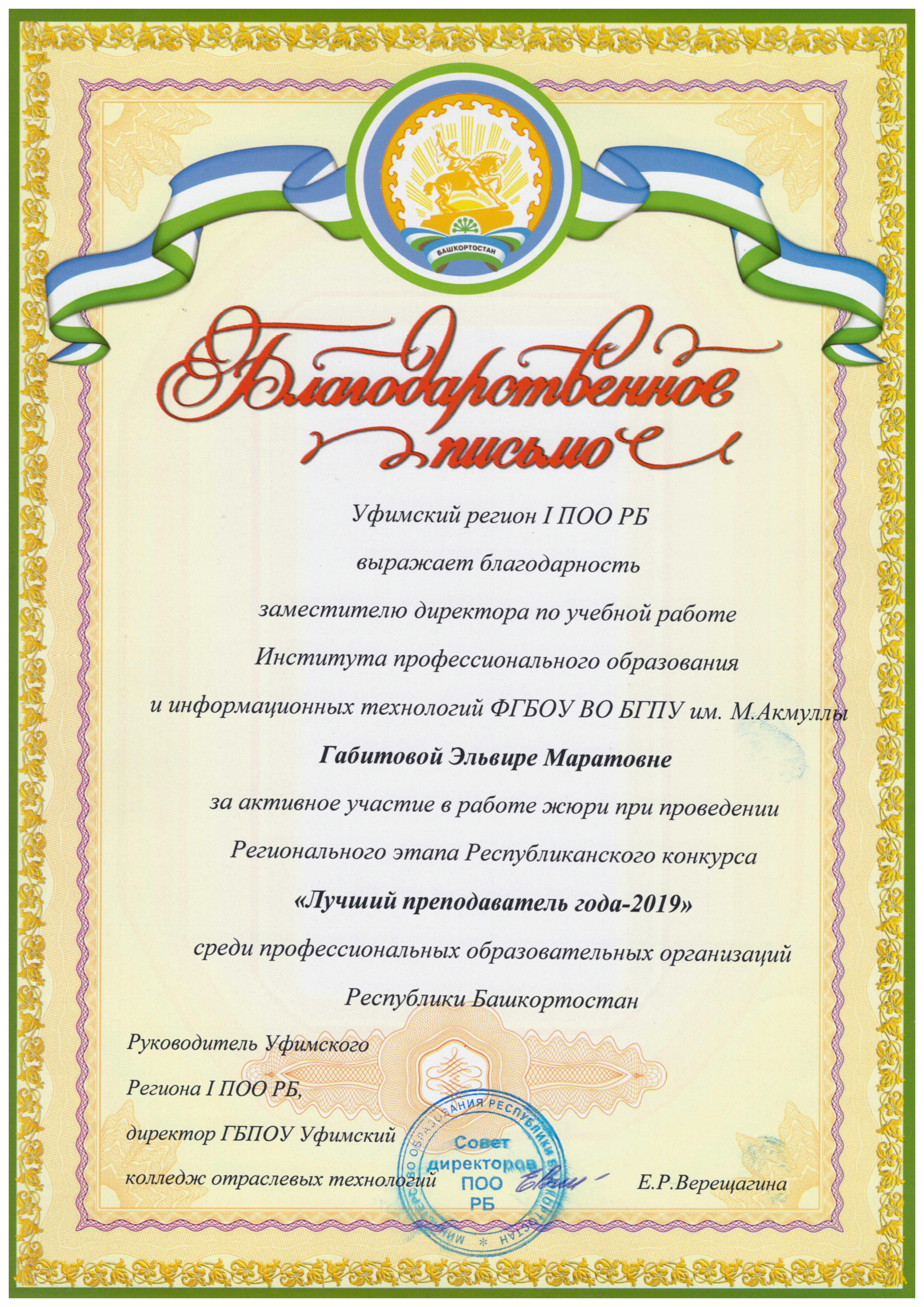 Каюмова Г.И., преподаватель ГБПОУ Уфимский профессиональный колледж имени Героя Советского Союза Султана Бикеева (номинация «За эффективность обучения»);