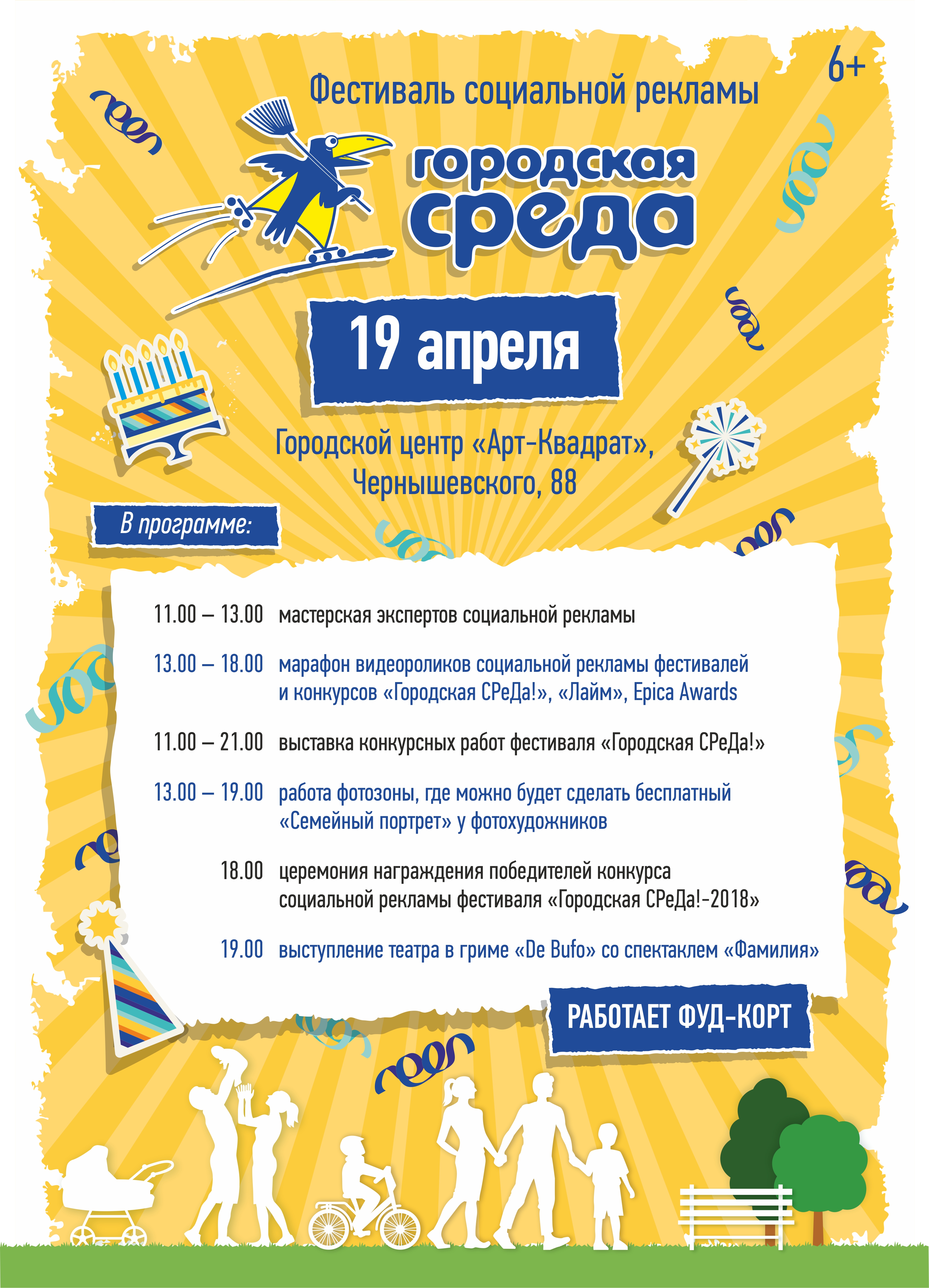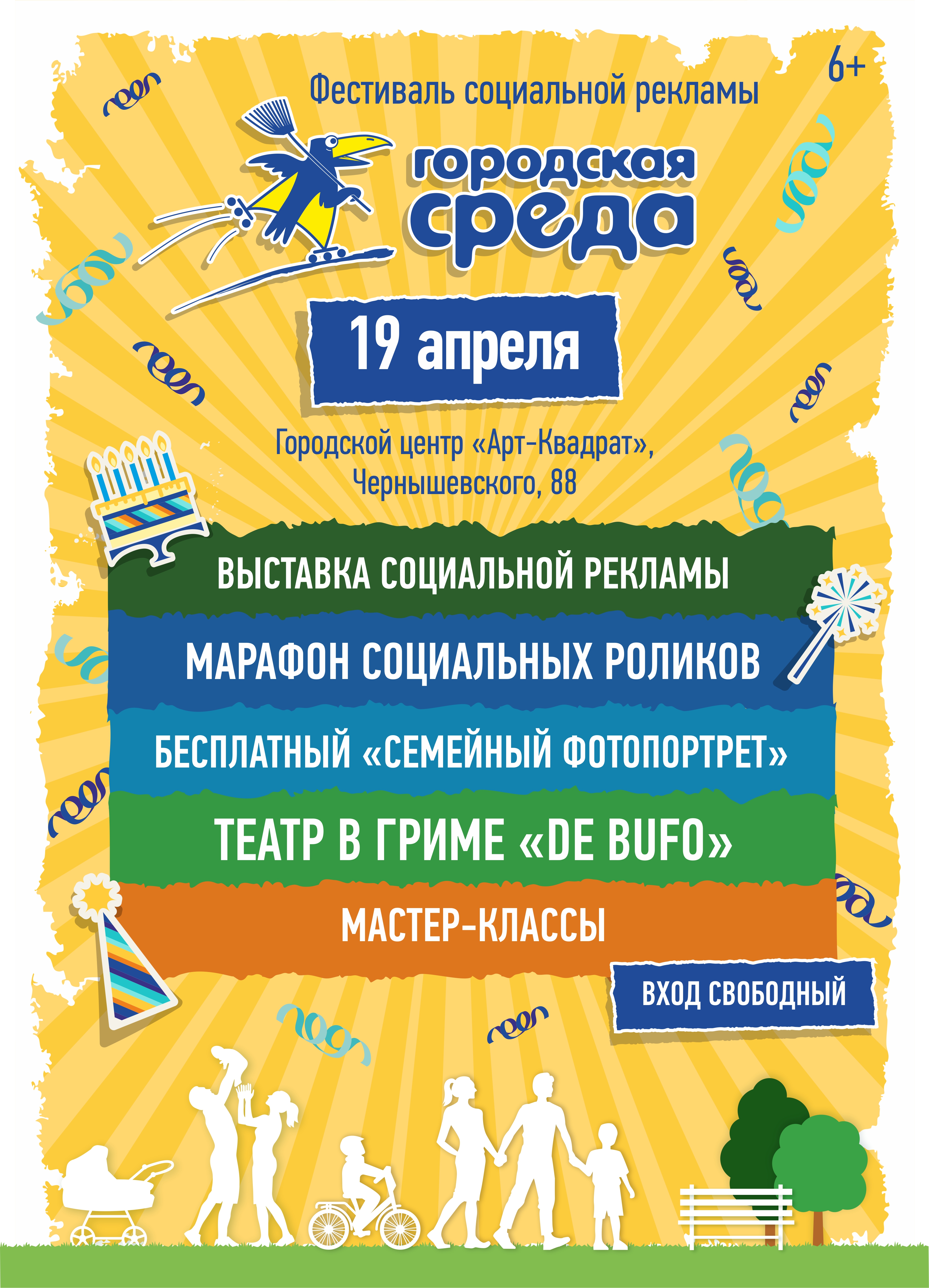 19 апреля в городском центре «Арт-Квадрат» (ул. Чернышевского, 88) пройдет фестиваль социальной рекламы «Городская СРеДа!».