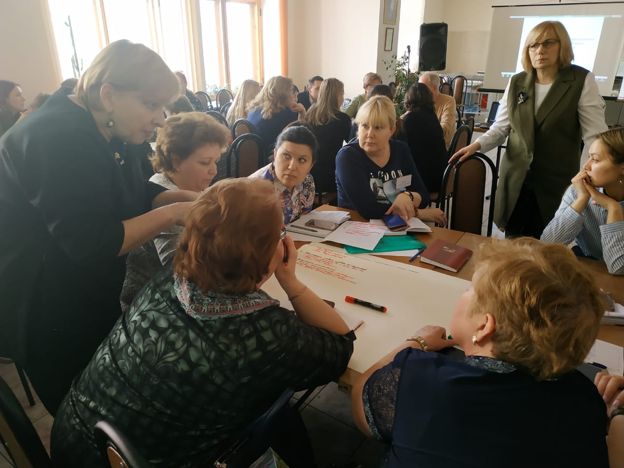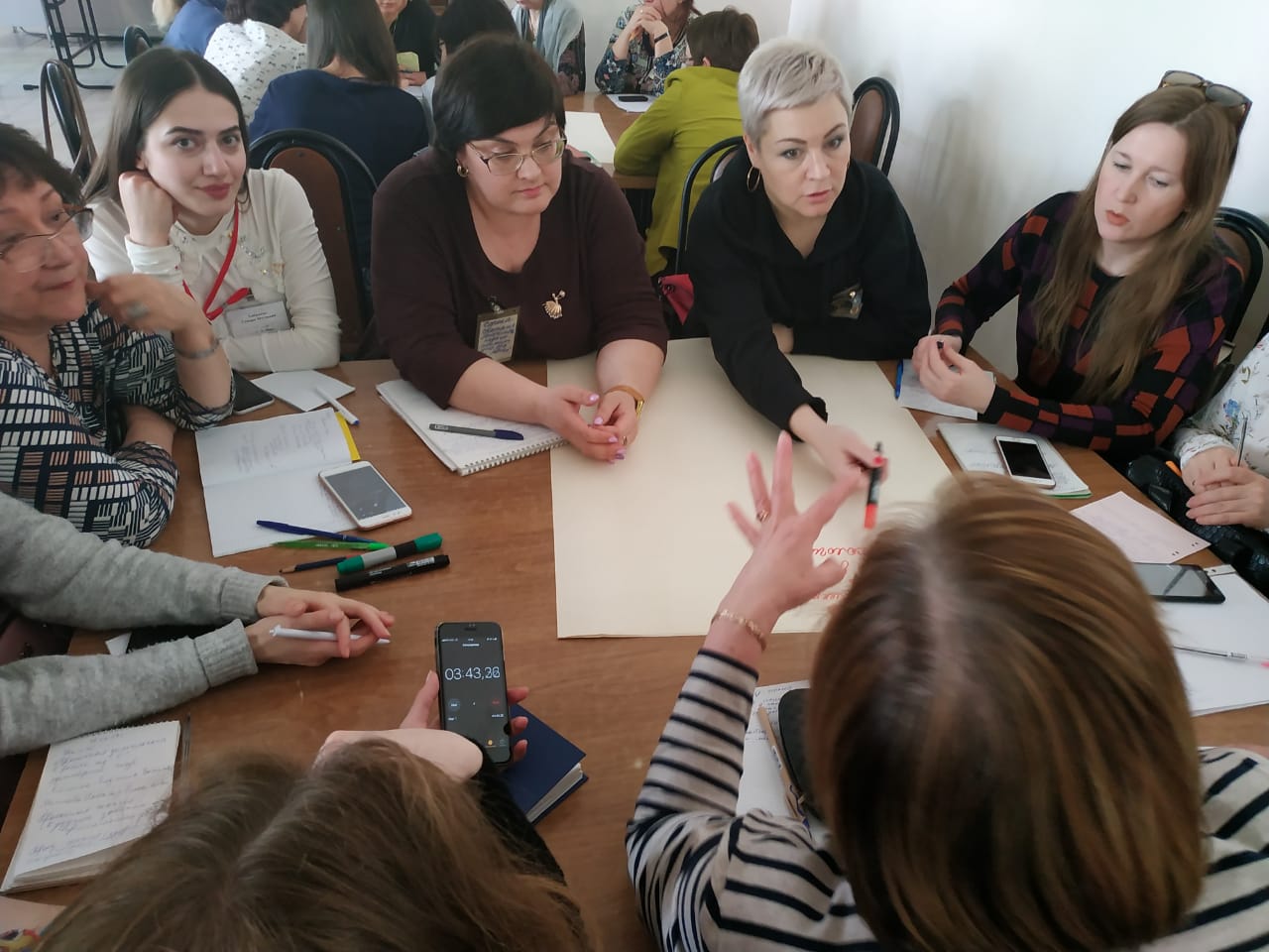 Спикеры Н.Н. Моисеева и Л.В.  Лямина для проведения сессии выбрали метод активного общения. Участники разделились на группы и расположились за круглыми столами. Познакомив участников с методологией проектной деятельности, провели тренд-сессию, организовав пошаговую проработку проектов. Такое неформальное общение позволило выработать много интересных идей.