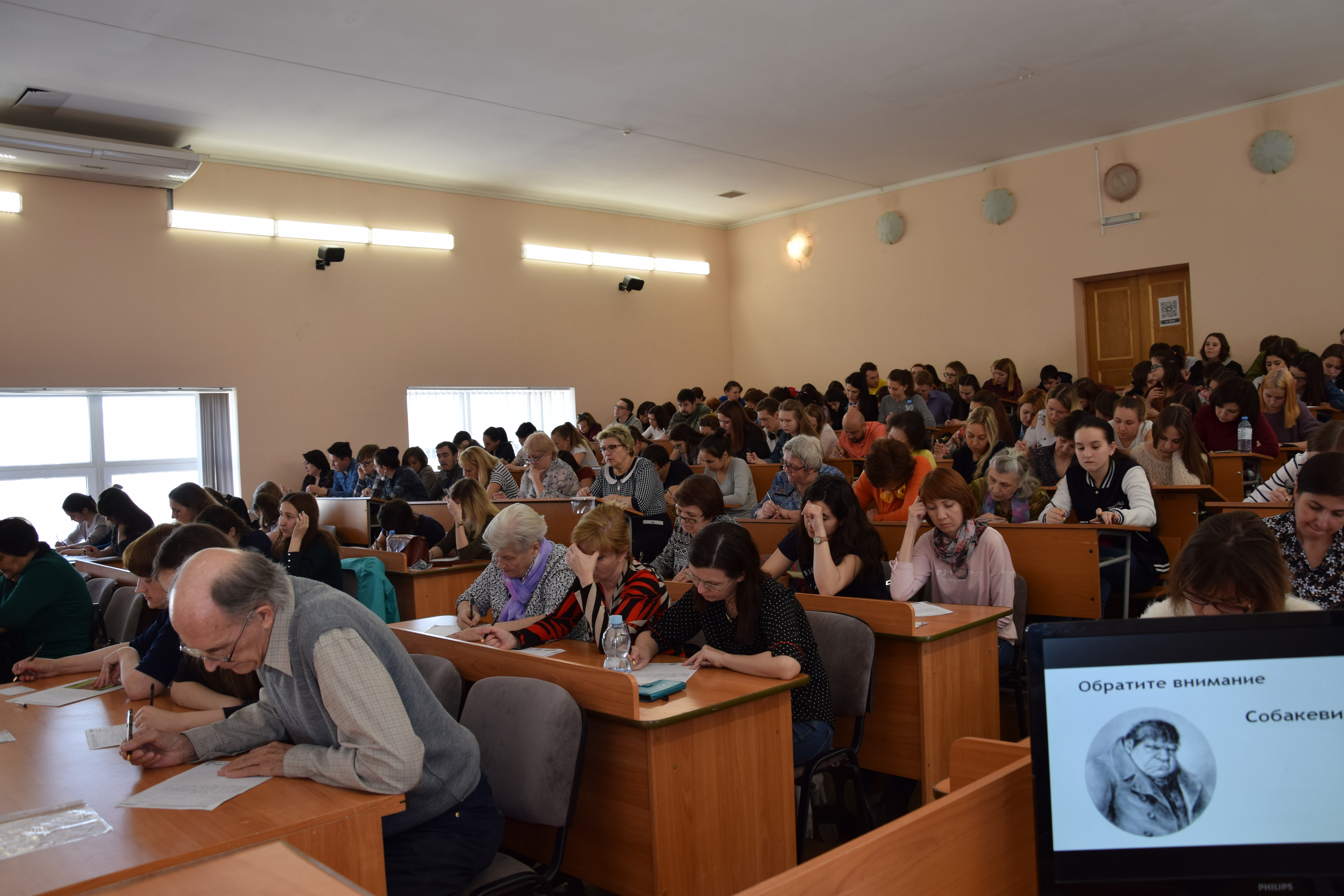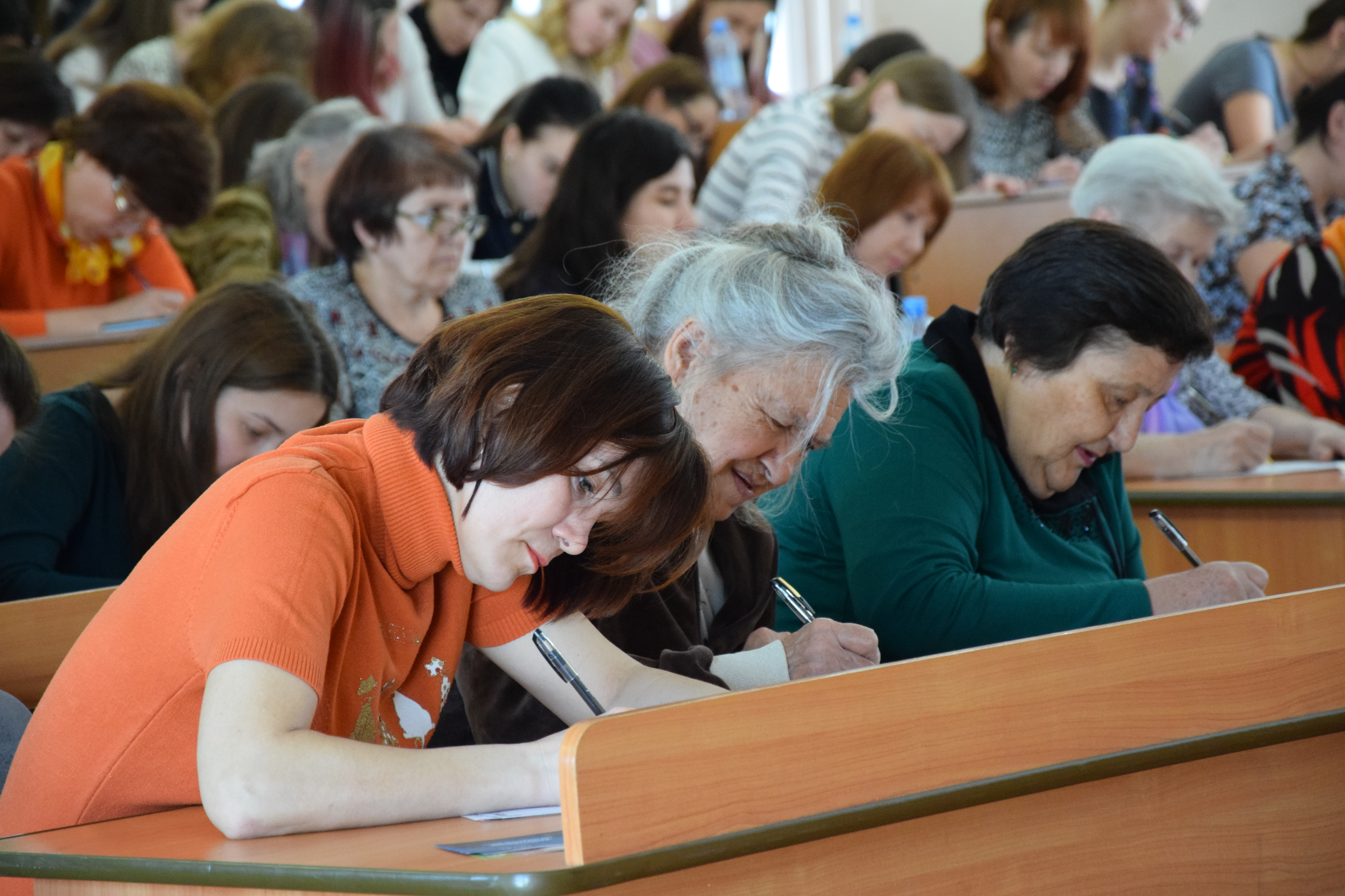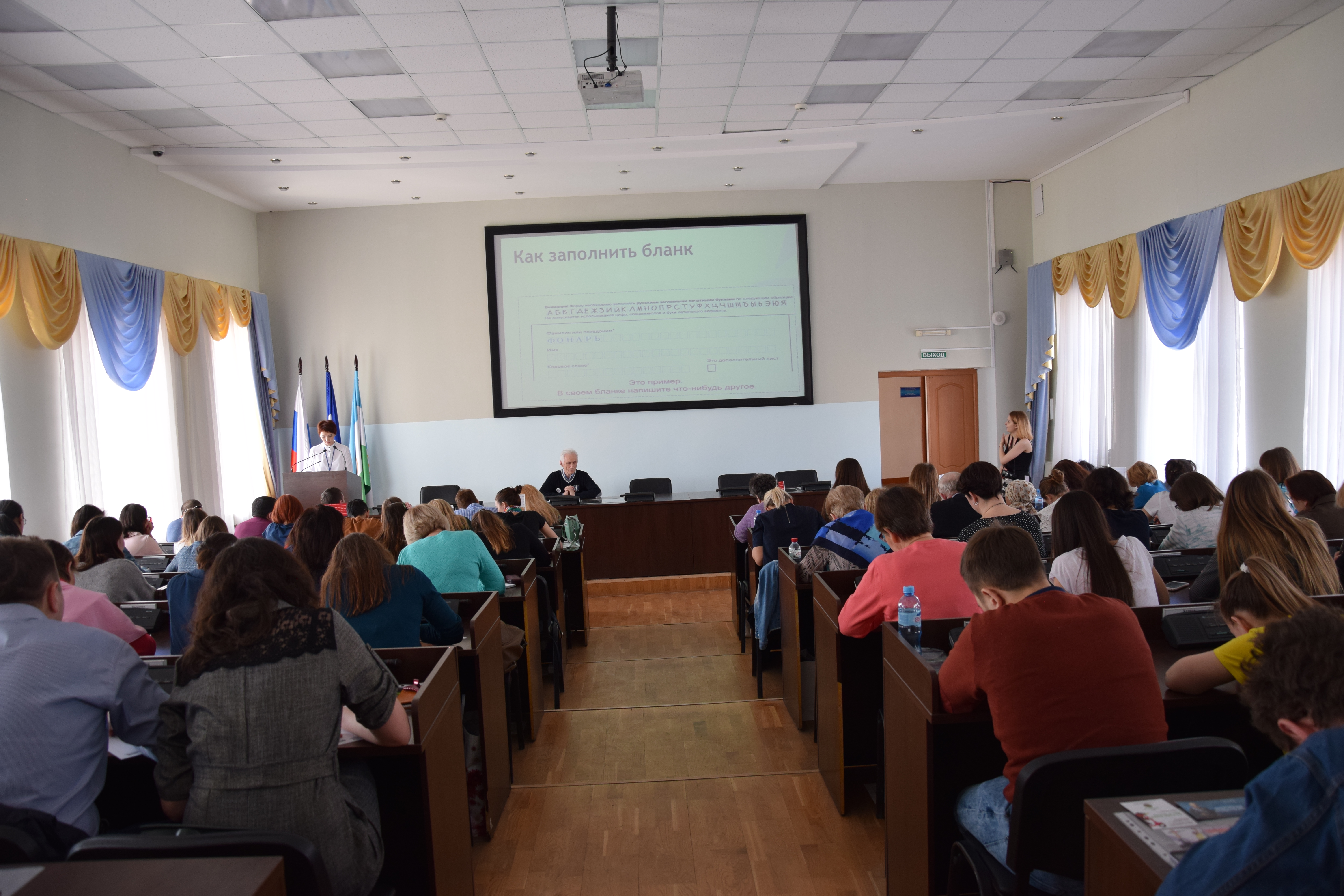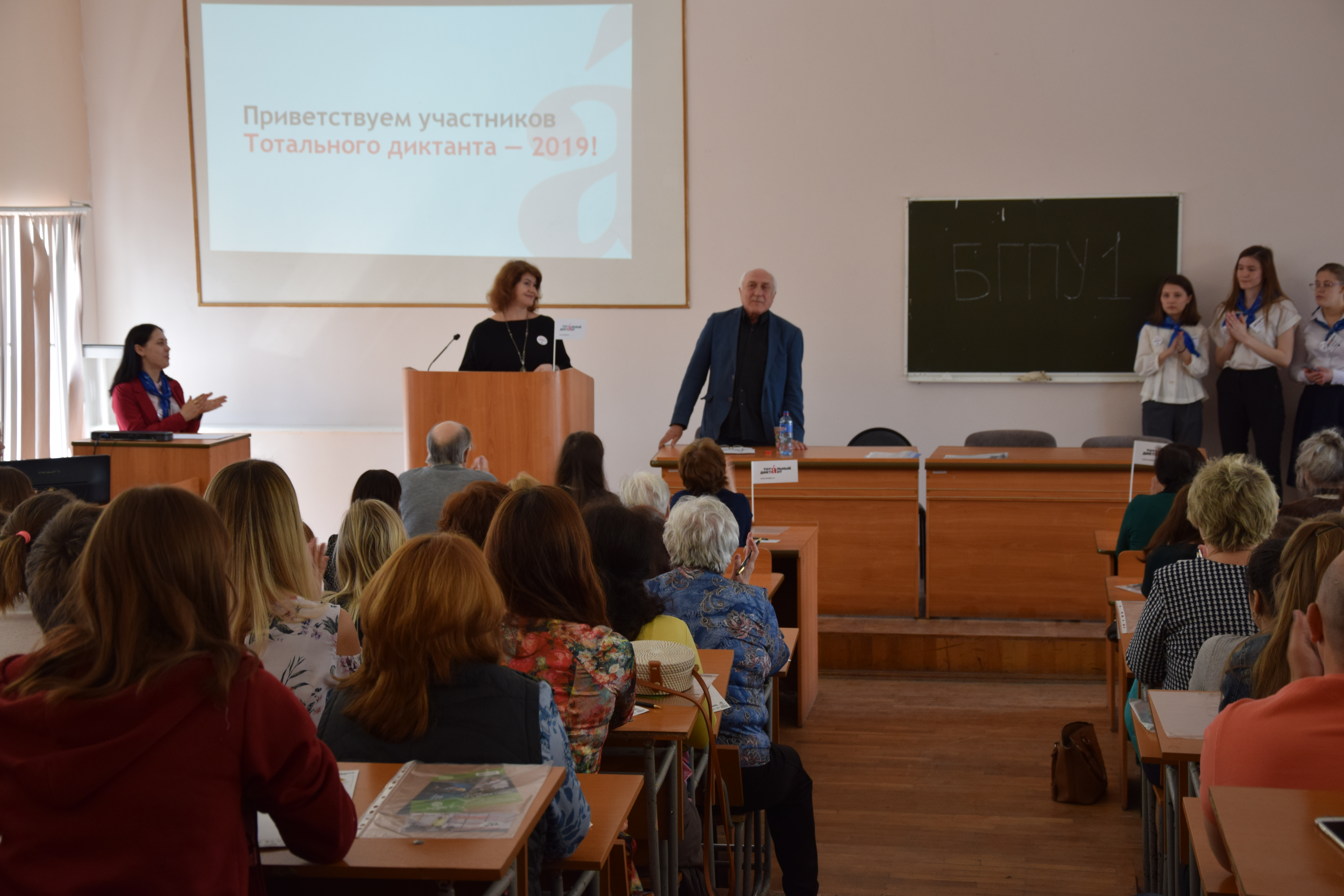 Зато в БГПУ им. М. Акмуллы впервые за время проведения диктанта потребовалась третья, дополнительная аудитория, так как количество участников побило предыдущий рекорд и составило 300 человек. Диктаторами в этом году на площадках были заведующий кафедрой русского языка университета И.В. Артюшков, доцент Института развития образования РБ Ю.В. Ошеева, а в роли «звездного» диктатора выступил актер Русского драматического театра В.Д. Гриньков. Традиционно среди участников были люди разных возрастов и профессий, люди приходили семьями, классами вместе со своими учителями.