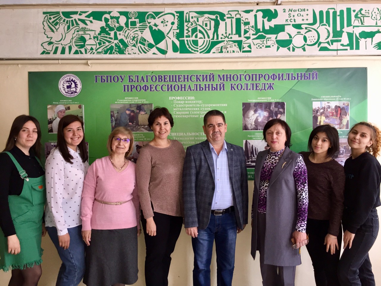 22 мая 2019 года в Благовещенском многопрофильном профессиональном колледже выступили с презентацией БГПУ им. М. Акмуллы Тимерханов Ф.Ф., ответственный секретарь приемной комиссии и Фатхулова Д.Р., доцент кафедры романо-германского языкознания и зарубежной литературы. Учащиеся имели возможность ознакомиться с учебными программами и получить подробную информацию по специальностям и направлениям подготовки на 2019-2020 учебный год.