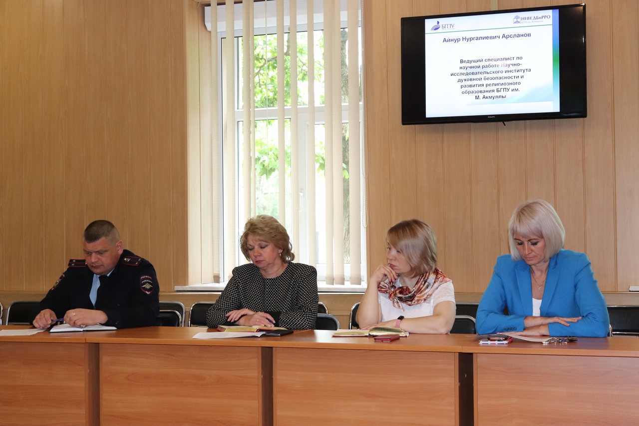 С лекцией по профилактике религиозного экстремизма выступил ведущий специалист по научной работе Научно-исследовательского института духовной безопасности и развития религиозного образования БГПУ им. М. Акмуллы Айнур Арсланов. Выступающий рассказал о проводимой в республике работе, о направлениях деятельности, мероприятиях, которые ожидаются в ближайшее время: конференциях, семинарах на тему противодействия идеологии терроризма и экстремизма.  "Знание и навыки сознательной защиты от экстремистских угроз, которые направлены на подрыв духовности, нравственности молодого поколения, формируется в процессе образования и воспитания. Если грамотно поставлены воспитательные процессы, начавшиеся в раннем детстве в семье и которые продолжатся далее в учебном заведении или в производстве, тогда каждая нация будет обладать здоровым, крепким, устойчивым мировоззрением против религиозного экстремизма", - подчеркнул лектор.