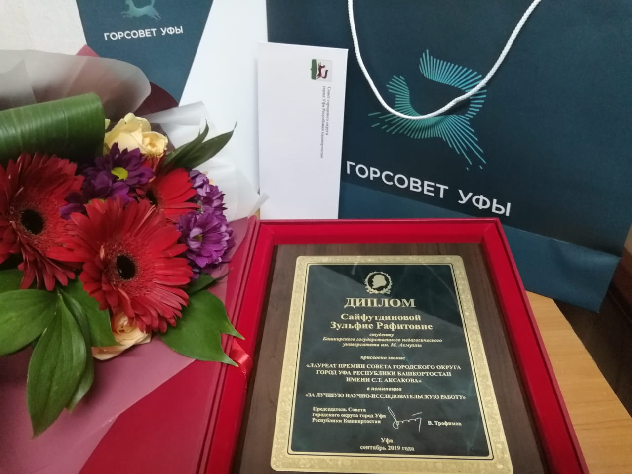 Итоги конкурса подвели в рамках ХХIX Международного Аксаковского праздника. Вручал награды председатель Совета города Уфа Валерий Трофимов. Вот уже почти три десятилетия городской Совет поддерживает молодежь, изучающую творчество С.Т. Аксакова.  Среди победителей и лауреатов конкурса – магистрантка кафедры русской литературы Зульфия Сайфутдинова (научный руководитель – д.ф.н., проф. В.В. Борисова), награжденная благодарственным письмом и специальным призом Премии Горсовета имени С.Т. Аксакова за работу «Интермедиальный урок по очерку С.Т. Аксакова «Буран»». Праздник украсили концертные номера артистов Башкирского государственного театра оперы и балета, а также вокальные и хореографические коллективов республики.