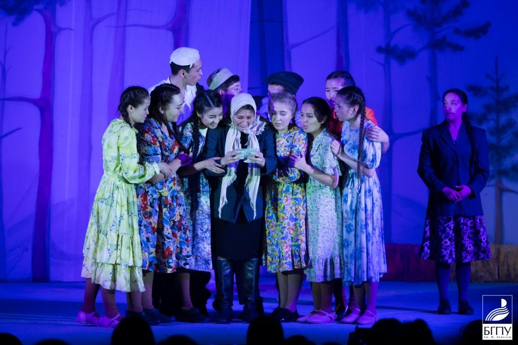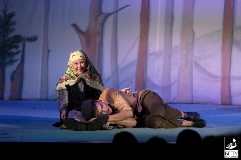 После этого Радий Хабиров вместе с учителями, удостоенными сегодня государственных наград, посмотрел спектакль Народного театра «Ҡорос» БГПУ имени М. Акмуллы по пьесе башкирского писателя Ибрагима Абдуллина «Озорная молодость» («Тиле йәшлек»).