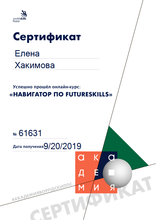В начале текущего учебного года старшие преподаватели Юнир Габидуллин и Елена Хакимова поступили в «World Skills Academy», успешно пройдя вступительный тест. В Академии они прошли обучение по программе «Навигатор по Future Skills». В настоящее время Юнир Зульфатович получил свидетельство эксперта демонстрационного экзамена по компетенции «Программные решения для бизнеса стандарта WorldSkills Russia», а Елена Азатовна – свидетельство эксперта демонстрационного экзамена по компетенции «Web-дизайн и разработка».  Полученные свидетельства дают преподавателям право участвовать в оценке демонстрационных экзаменов и вносят вклад в развитие движения WorldSkills Russia в БГПУ им. М. Акмуллы. Движение WorldSkills не стоит на месте, появляются новые направления и компетенции.