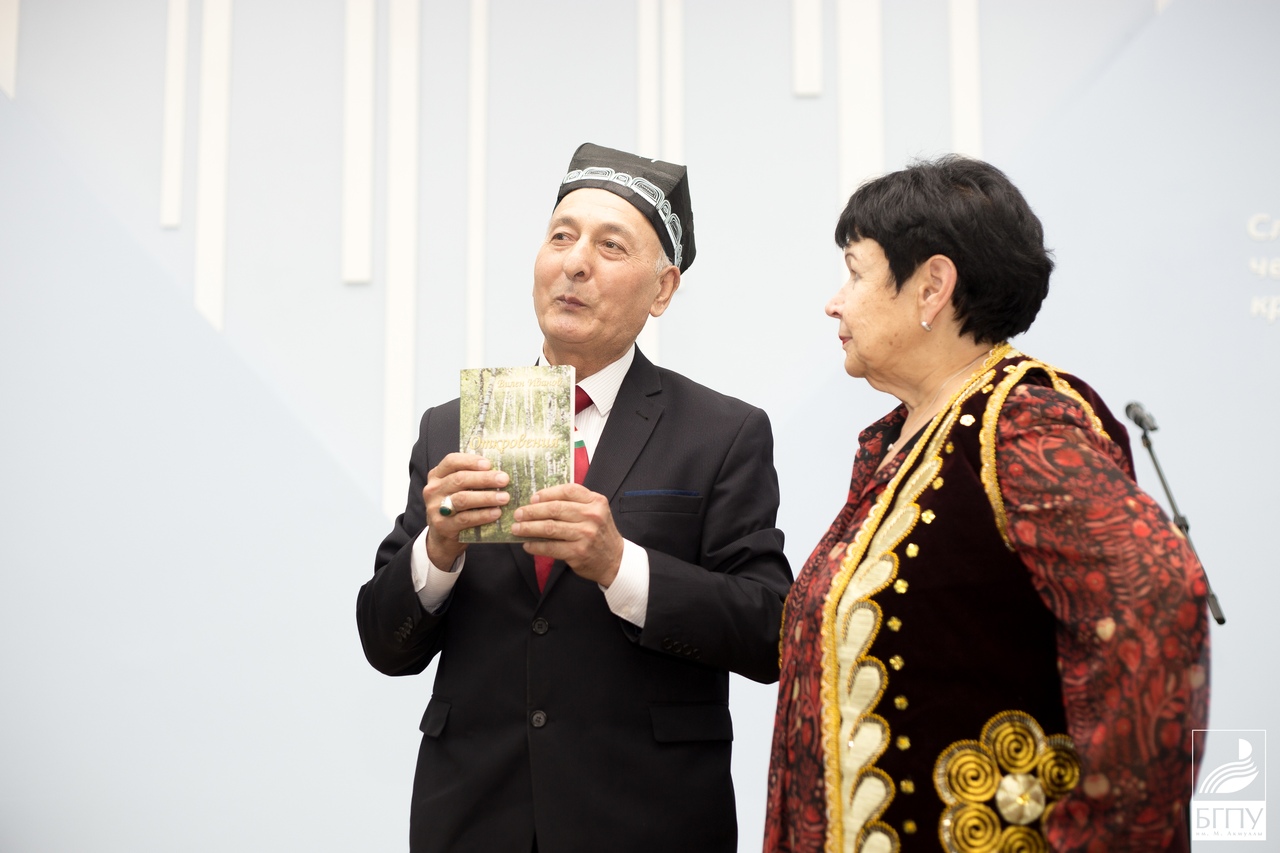 Празднично собрание украсили творческие номера солиста Башгосфилармонии Азамата Тимерова, Арслана Крымчурина, исполнившего роль Ямиля в фильме «Сестренка», отрывок спектакля  «ҺИНӘН БАШҠА ДОНЪЯМ ЯПА-ЯҢҒЫҘ...» народного театра «Ҡорос» БГПУ. Студент вуза Максим Приказчиков прочитал стихотворение Ярослава Смелякова «Четырем друзьям», посвященное выдающимся писателям разных народов Р.Гамзатову, М.Кариму, К.Кулиеву и Д.Кугультинову.