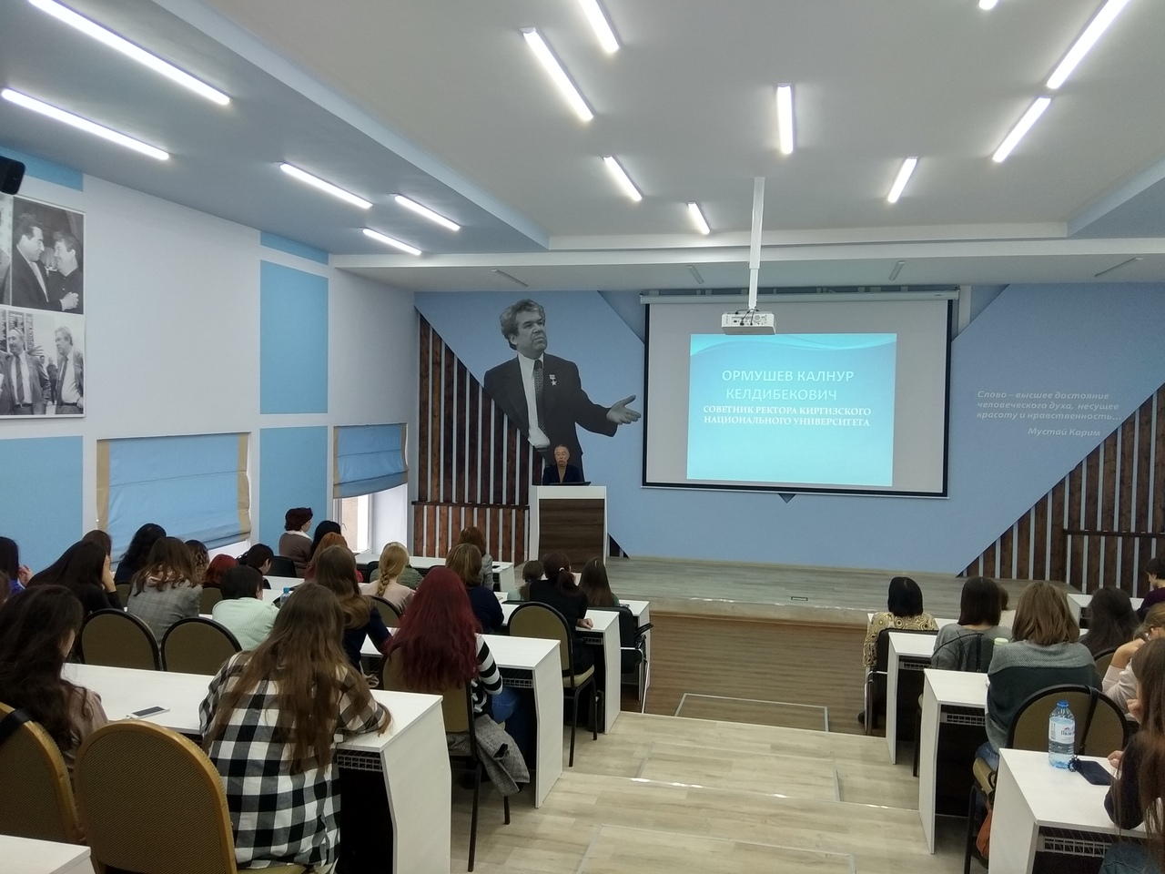 19 октября в БГПУ состоялись открытые лекции кыргызских гостей. Перед студентами и преподавателями ИФОМК выступили заместитель президента Международного Иссык-Кульского форума им. Ч. Айтматова Динара Джумабаева и советник ректора Кырыгзского национального университета Калнур Ормушев. Д. Джумабаева рассказала собравшимся о значимости культурного наследия и связей между народами для духовного развития наций, поделилась опытом работы фонда им. Ч. Айтматова по популяризации творческого наследия Мустая Карима. Калнур Ормушев поделился мнением о геополитической ситуации в Средней Азии и развитие процессов международного сотрудничества в этом регионе.