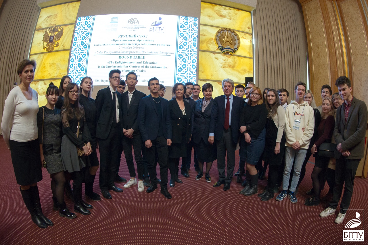 В работе круглого стола приняли участие Посол по особым поручениям МИД Российской Федерации, Ответственный секретарь Комиссии РФ по делам ЮНЕСКО Григорий Орджоникидзе, Посол Доброй Воли ЮНЕСКО, член Комиссии РФ по делам ЮНЕСКО Александра Очирова, и.о. министра образования РБ Айбулат Хажин, ректор Башкирского государственного педагогического университета им. М. Акмуллы Салават Сагитов, представители Национальных Комиссий по делам ЮНЕСКО зарубежных стран, руководители и сотрудники Кафедр ЮНЕСКО, Ассоциированных школ ЮНЕСКО, а также представители научного и экспертного сообществ сферы образования.