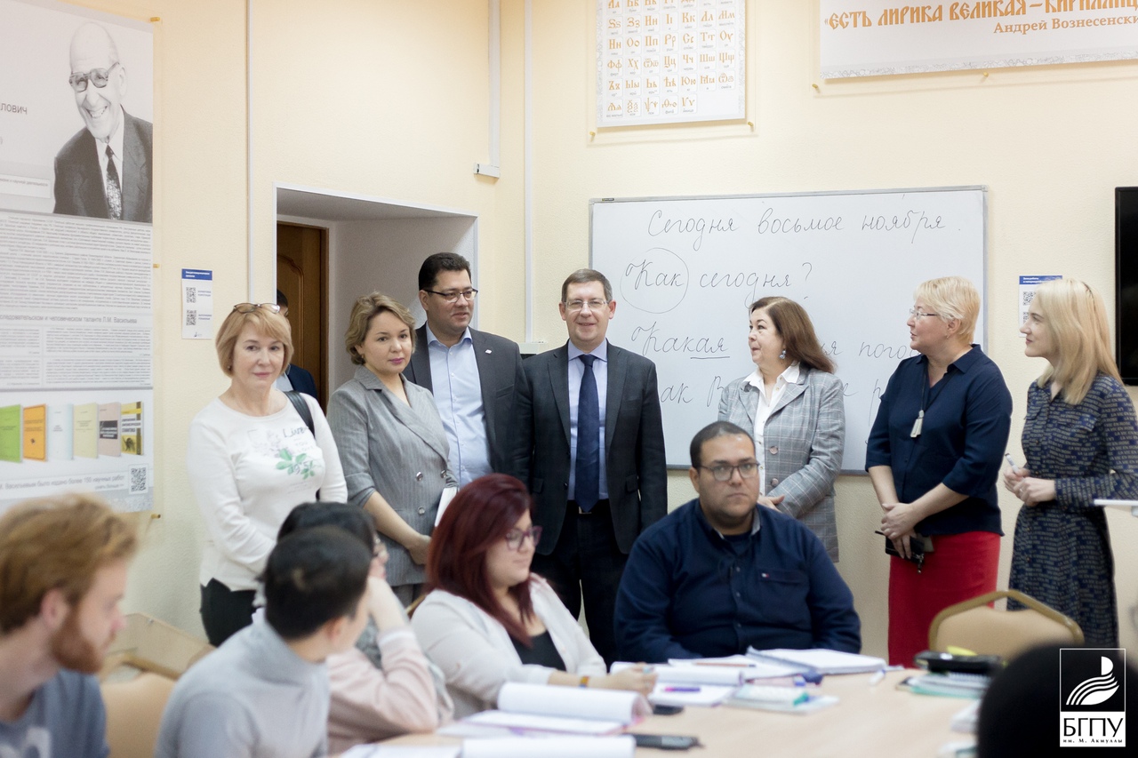 7 ноября 2019 года в БГПУ состоялась встреча председателя Государственного комитета РБ по внешнеэкономическим связям Руслана Мирсаяпова и ректора университета Салавата Сагитова со студентами-волонтерами. В мероприятии также приняли участие ведущий специалист АНО Конгресс-бюро Башкортостан «Офис-групппа» Елена Бакиева и региональный куратор волонтеров культуры ДК Республиканского центра народного творчества Лира Волкова.
