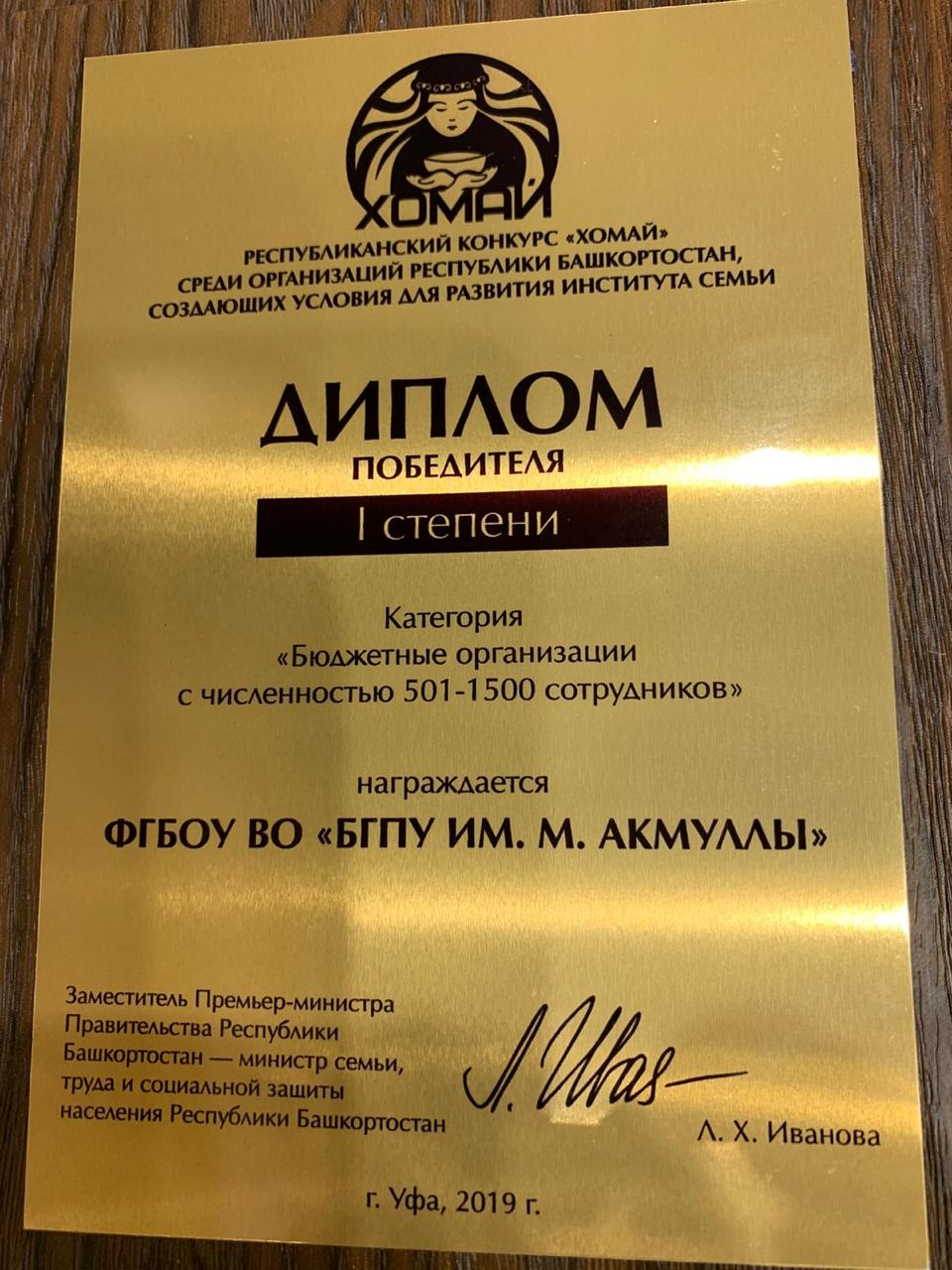Церемония награждения победителей состоялась в ГКЗ «Башкортостан».  Наш университет удостоен Диплома 1 степени в категории «Бюджетные организации с численностью 501-1500 сотрудников».