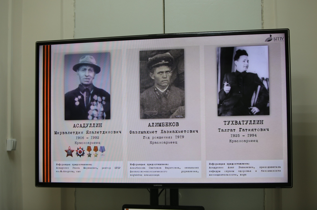 Память о героях Великой Отечественной войны бережно хранится в Башгоспедуниверситете. В этом году площадь перед главным корпусом вуза украсили полотна с информацией о вкладе региона в победу над фашизмом и героях Великой Отечественной войны - уроженцах Башкирии. На полотнах размещен QR-код, перейдя по которому можно ознакомиться с более подробной информацией.