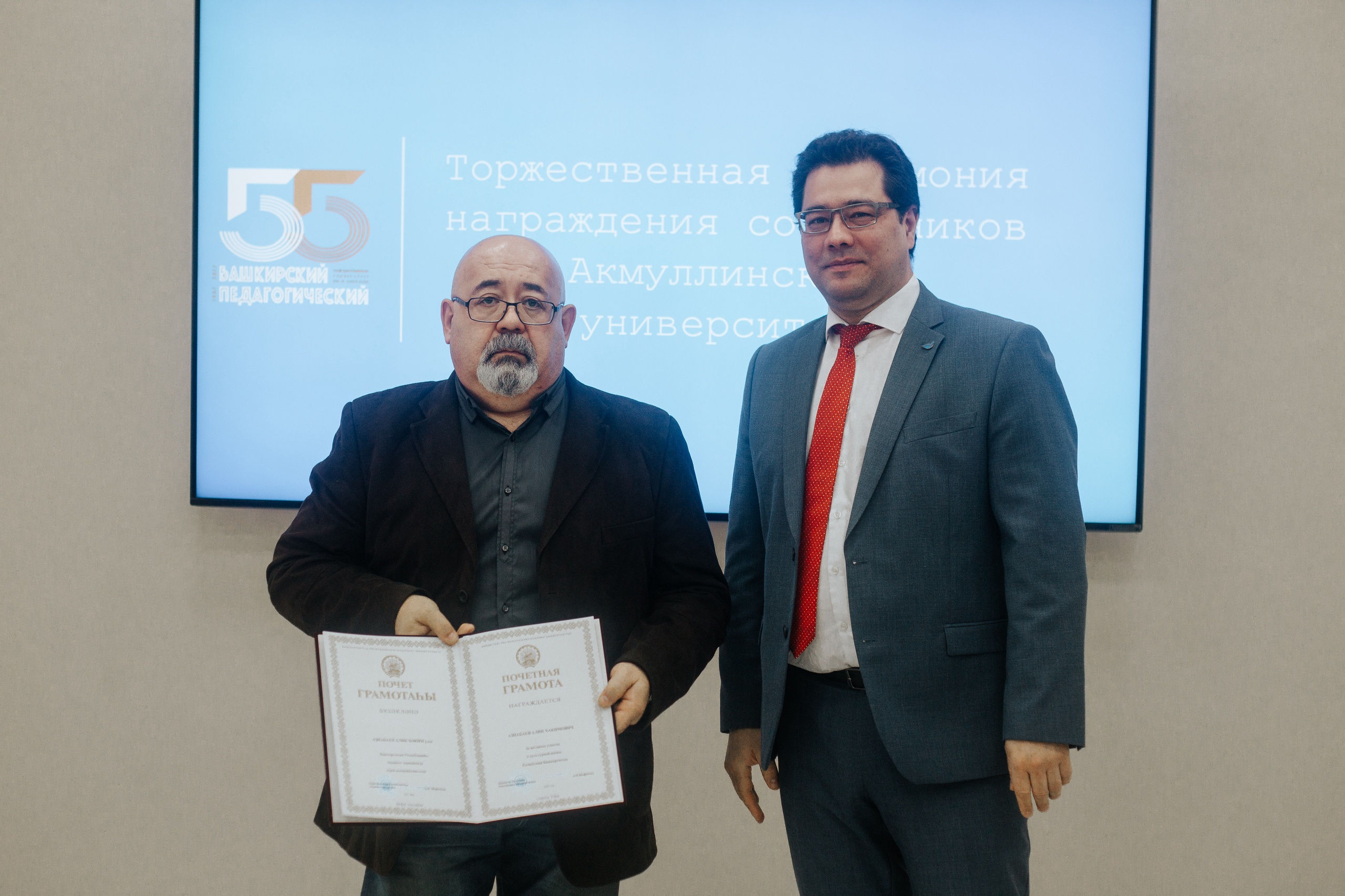 29 марта 2022 года в БГПУ им. М. Акмуллы состоялась торжественная церемония чествования сотрудников вуза. Лучшие из лучших получили государственные и ведомственные награды Российской Федерации и Республики Башкортостан. Награждение приурочено к празднованию 55-летия со дня основания университета.