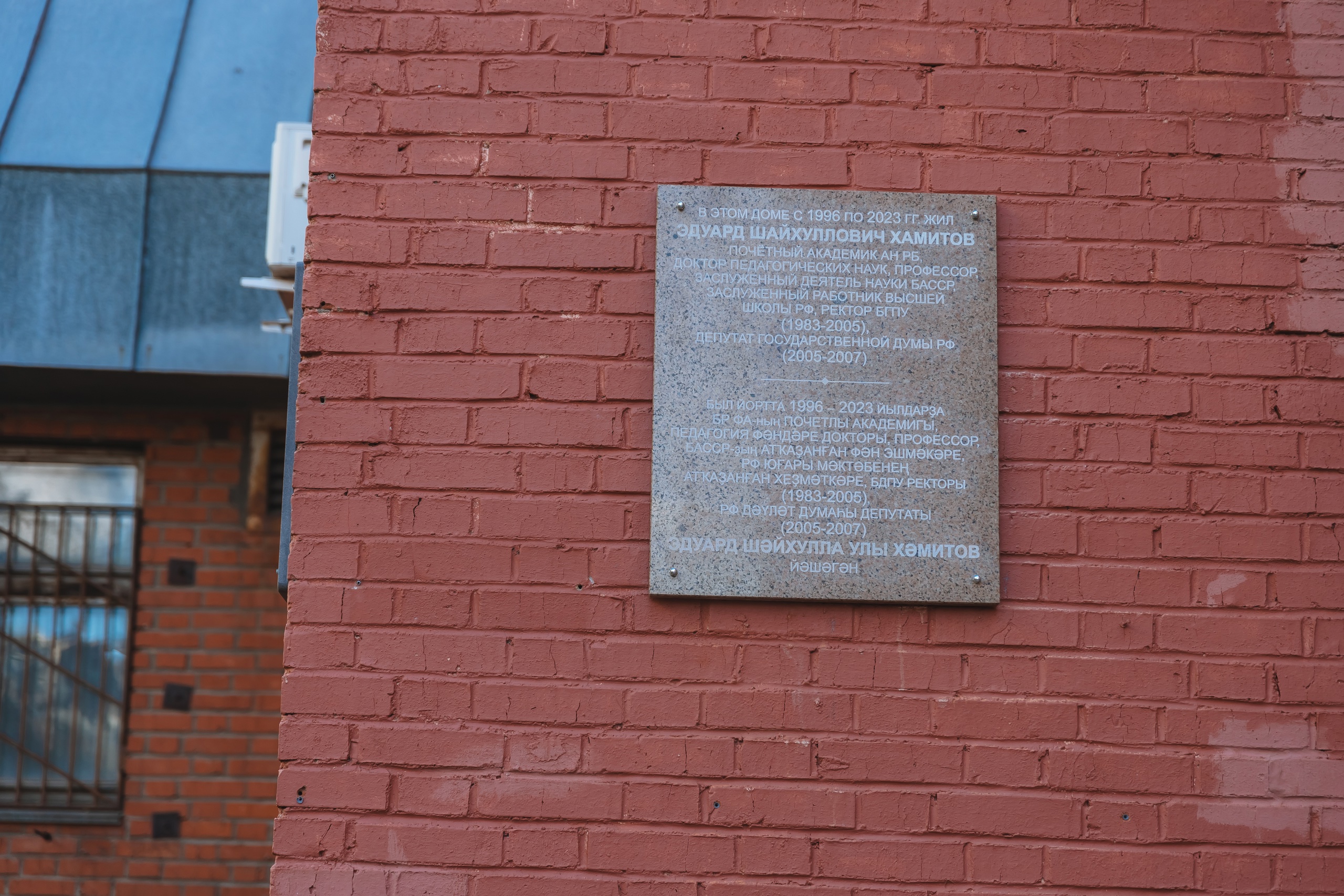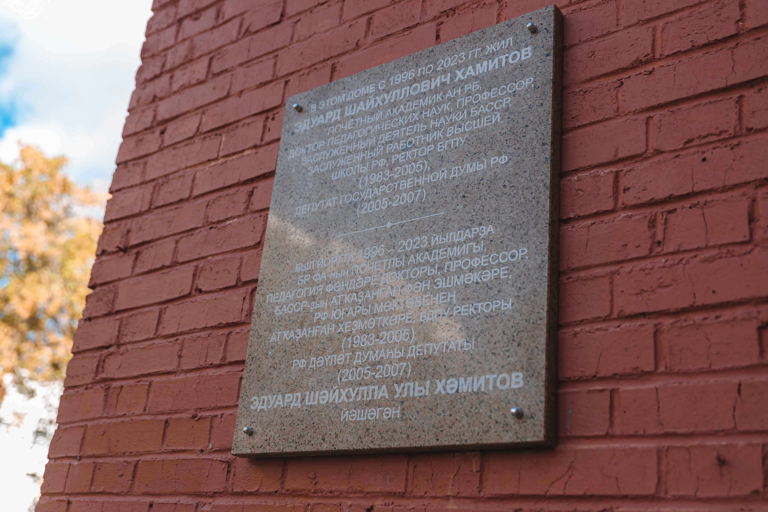 В Уфе на улице Мустая Карима, 48, где жил последние годы  Эдуард Шайхуллович Хамитов, открыли мемориальную доску. Почетный академик АН РБ, доктор педагогических наук, профессор, заслуженный  деятель наук БАССР,  заслуженный работник высшей школы РФ - Эдуард Шайхуллович Хамитов  всю свою жизнь посвятил служению педагогической науке, российскому и башкирскому образованию.