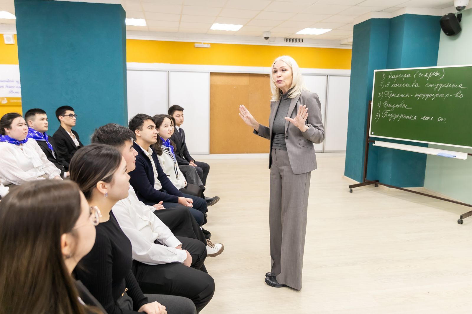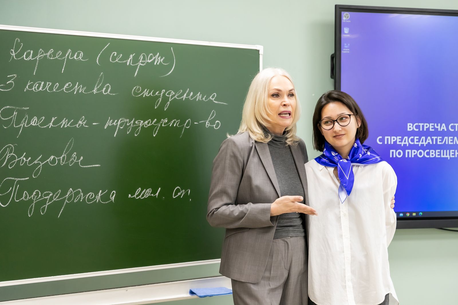 Визит председателя профильного комитета начался со встречи со студентами. Ирина Викторовна дала ребятам настоящий мастер-класс. Студентов интересовали разные вопросы. Какие три главных качества должен воспитать в себе студент педвуза, чтобы быть современным учителем и приносить пользу обществу? Какие главные вызовы стоят перед Россией в ближайшем будущем? Какие возможности существуют для участия студентов в разработке и реализации образовательных программ и проектов? И, конечно, студентов интересовала личная история успеха Ирины Викторовны.