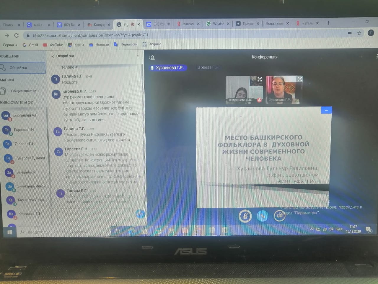 На виртуальной платформе БГПУ им. М.Акмуллы прошли секционные заседания.  Модератором секций  «Проблемы изучения и сохранения родных языков» и «Актуальные вопросы родных литератур» выступила заместитель декана по научной работе ФБФ, к.ф.н. Галина Г.Г.