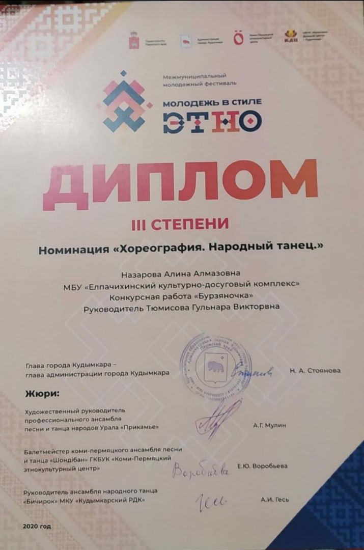 Поздравляем студентку I курса факультета башкирской филологии Алину Назарову с получением диплома III степени Межмуниципального молодежного форума "Молодежь в стиле этно"