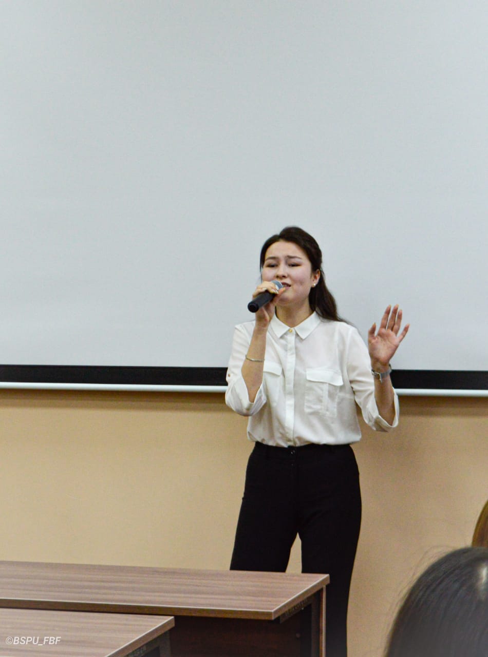 Студенты 2 курса подготовили интереснуюконцертную программу, в нее входили стихи на 3-х языках, различные игры и завершающим концертным номером стала башкирская песня под гитару.