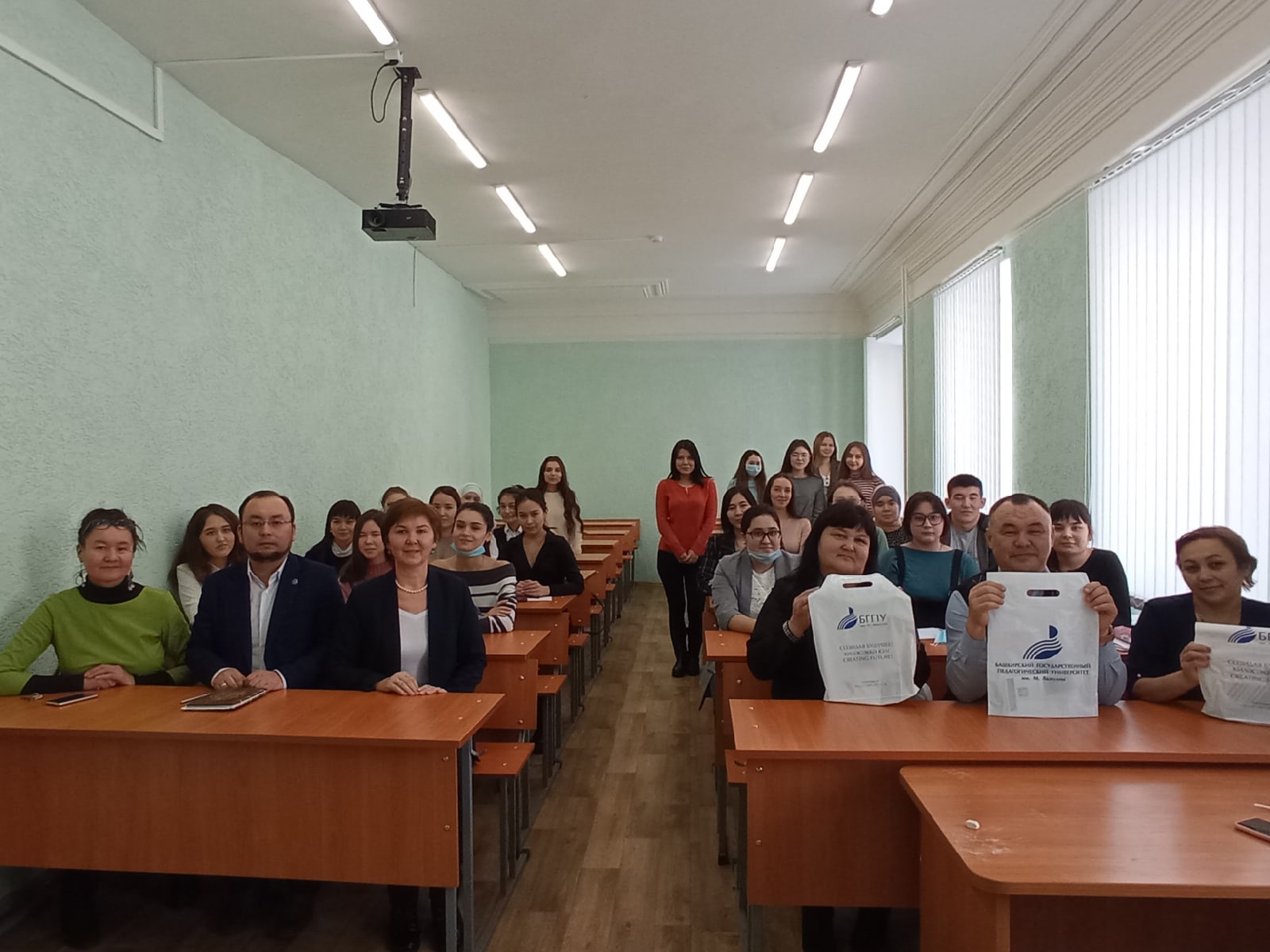 17 марта состоялась встреча студентов факультета башкирской филологии с учителями башкирского языка и литературы, работающими в Курганской, Оренбургской и Челябинской областях.  Ахатова Альбина Минлегуловна (Оренбургская область), Саидгалина Лариса Абубакировна (Челябинская область) и Садыков Джалиль Файрузович (Курганская область) рассказали об особенностях преподавания башкирского языка и литературы в соседних регионах. Студенты задавали вопросы, касающиеся учебников, учебных программ, организации уроков башкирского языка. Были заданы вопросы о башкирах, проживающих за пределами Республики. Преподаватели факультета башкирской филологии ознакомили гостей с факультетом, передали профорентационные материалы, пригласили к нам учиться. Надеемся, что такие встречи помогут наладить взаимовыгодные связи с образовательными организациями соседних областей.