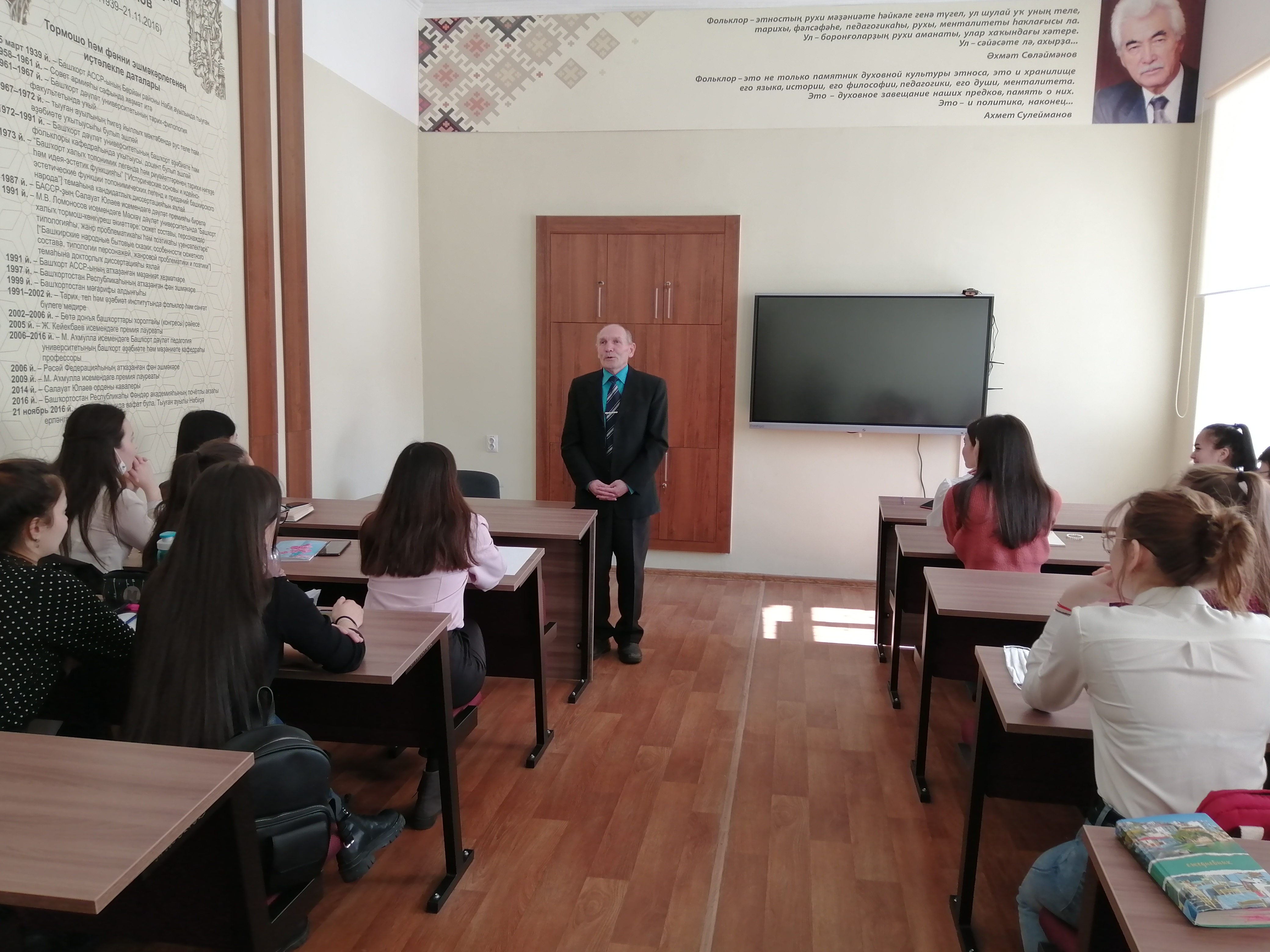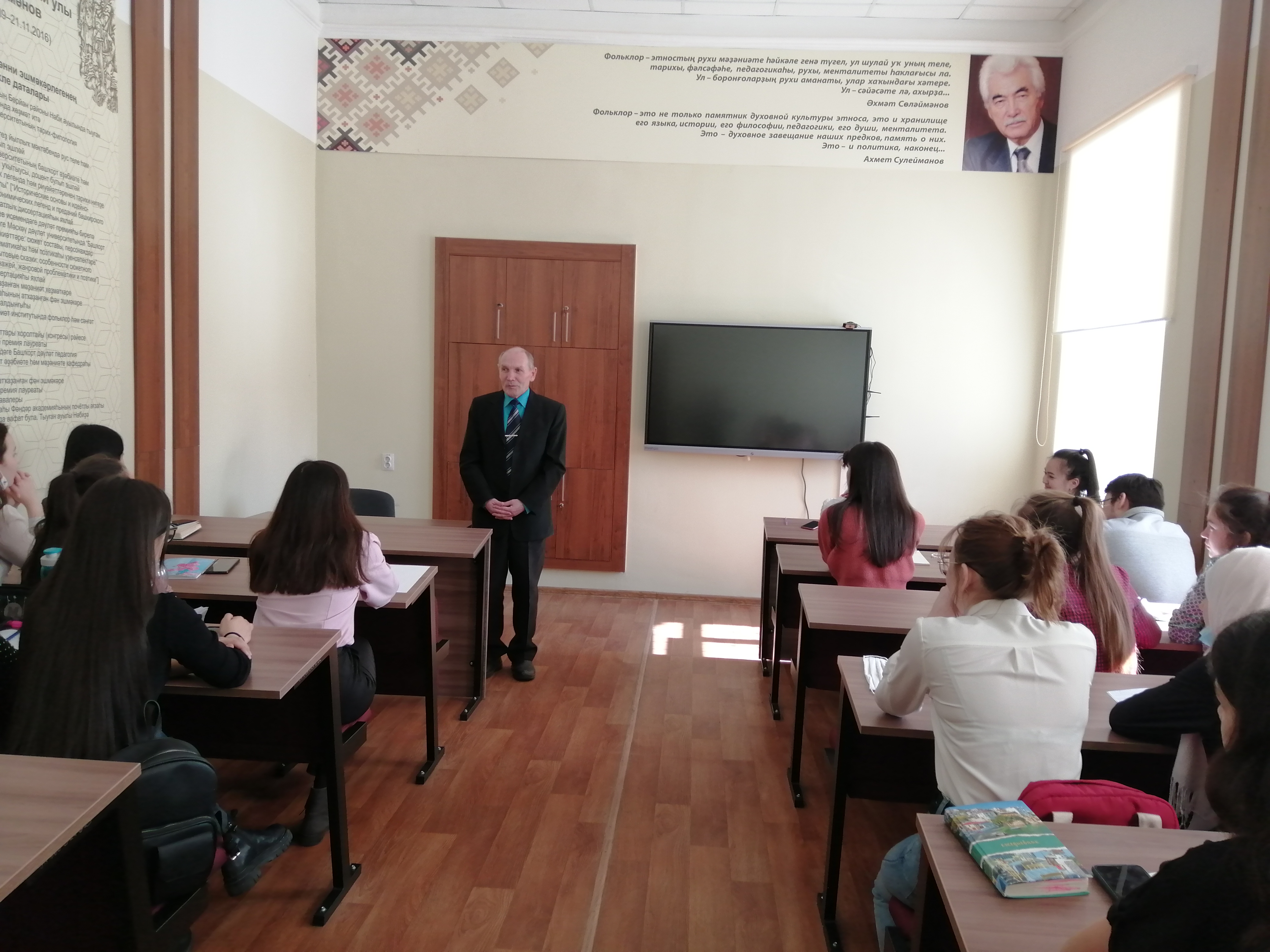 Курс «Современная башкирская литература» дает студентам возможность знакомится не только литературным процессом, но и живыми авторами произведений, которые они изучают по программе дисциплины. На семинаре у второкурсников присутствовал писатель, автор боле 20 современных романов, повестей, рассказов и новел, лауреат Государственной премии Республики Башкортостан имени Салавата Юлаева Ринат Камал.