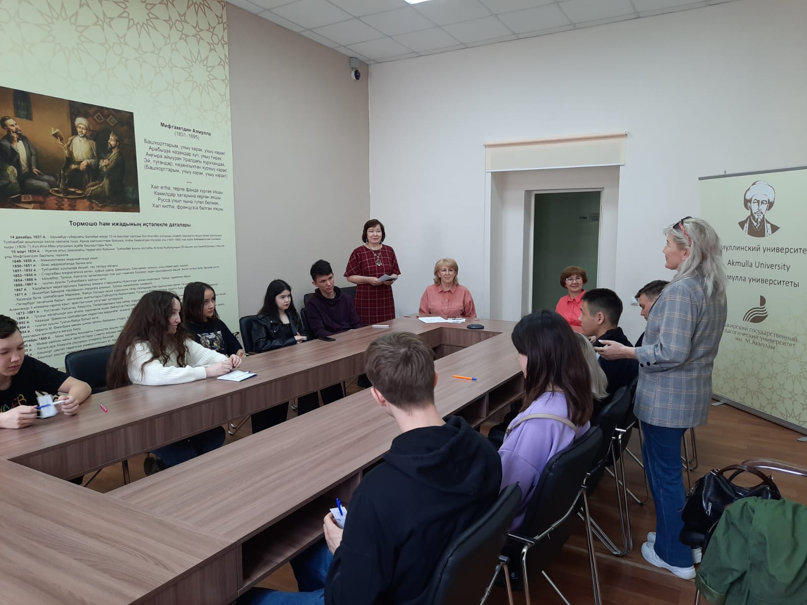 26 апреля 2022 года на базе факультета башкирской филологии состоялась встреча преподавателей и студентов факультета с обучающимися 10 класса МАОУ СОШ с. Акъяр №2 Хайбуллинского района. На встрече приняли участие декан факультета башкирской филологии, профессор Л.М. Хусаинова, зав.кафедрой башкирского языка и литературы, доцент С.А. Тагирова, доцент З.А. Хабибуллина и студенты 1 курса ФБФ Салимьян Яруллин.