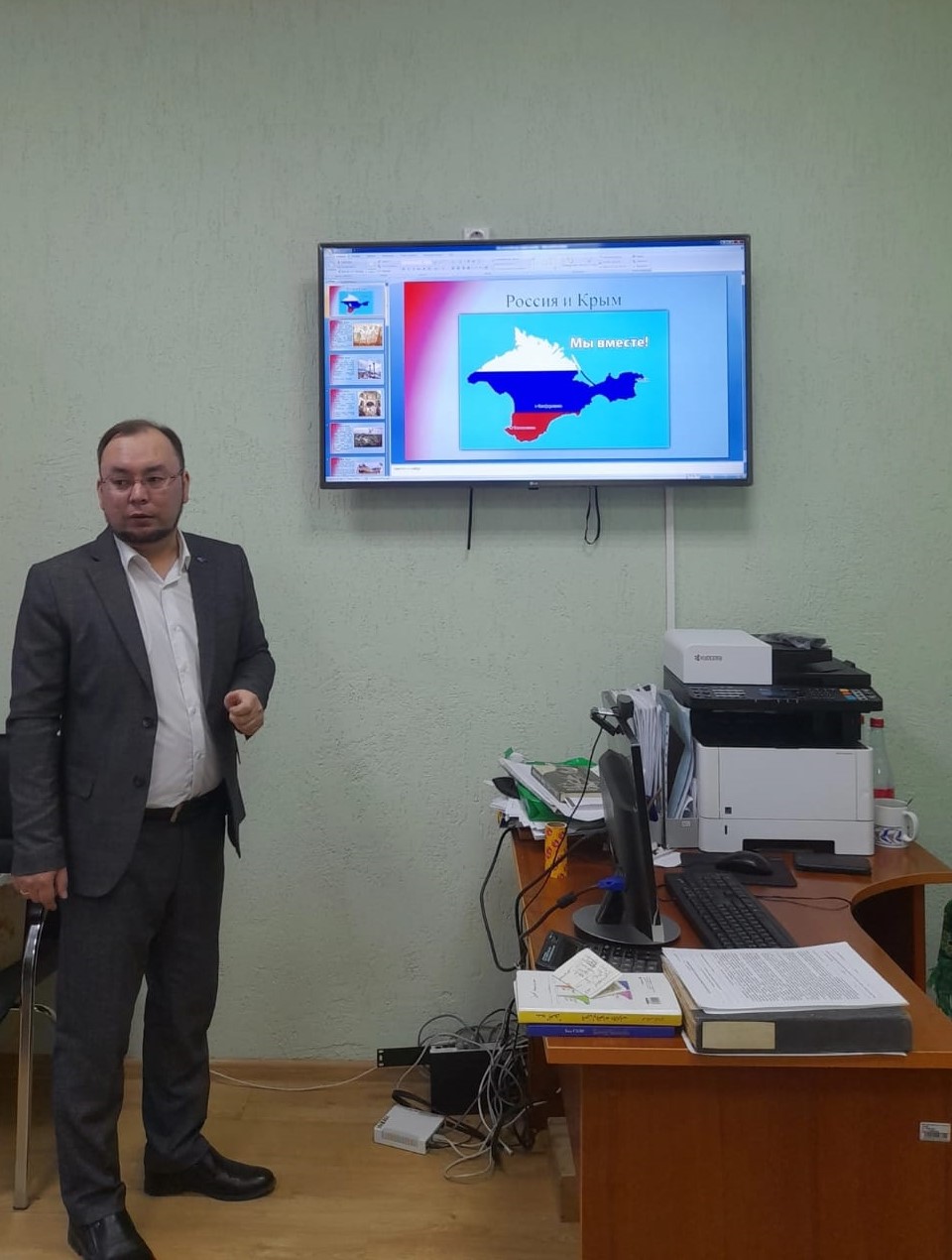 На факультете башкирской филологии прошёл разговор о важном на тему "День воссоединения Крыма к России". Куратор группы ПОИЯ КИРЯ 11-22 А. Ю. Куланчин рассказал студентам об истории Крымского полуострова. Айтуган Юмабаевич особо отметил о важности возвращения Крыма в состав России в 2014 году путем референдума, где большинство населения  проголосовало за воссоединение с Россией. Студенты рассказали о городе-легенде, городе великой судьбы, городе-крепости и родины русского черноморского военного флота - Севастополе. Известно, что героическая оборона Севастополя стала одним из самых ожесточенных сражений Великой Отечественной войны. 250 дней город не сдавался, отбивая яростные атаки немецко-фашистских войск, всеми силами стремясь не допустить врага на нашу родную землю. В рамках мероприятия был просмотрен видеоролик о прошедших в 2014 году событиях, изучена интерактивная карта. Была дана интерпретация термину «Русская весна» -это  массовое общественно-политическое движение против действий украинских властей, в защиту статуса русского языка. Этим праздником мы вспоминаем мужество наших героев, провозглашаем мир и единство России.