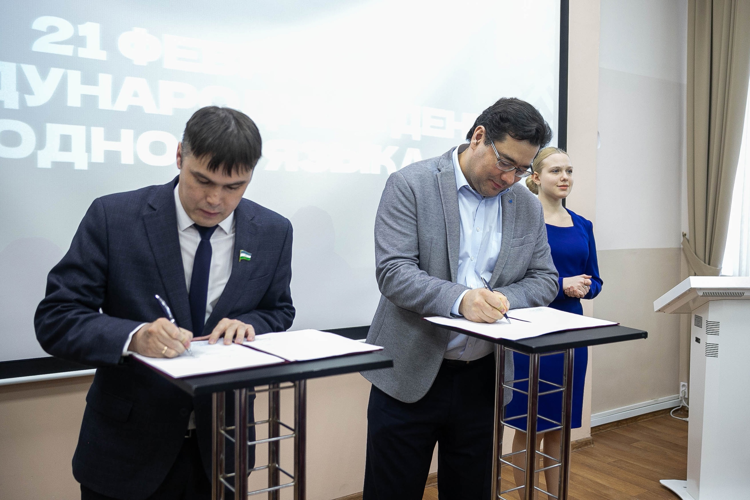 Завершились мероприятия, посвященные Международному дню родного языка, подписанием соглашения о сотрудничестве между Акмуллинским университетом и Союзом писателей Башкортостана. Его заключили ректор вуза Салават Сагитов и председатель Союза Айгиз Баймухаметов.
