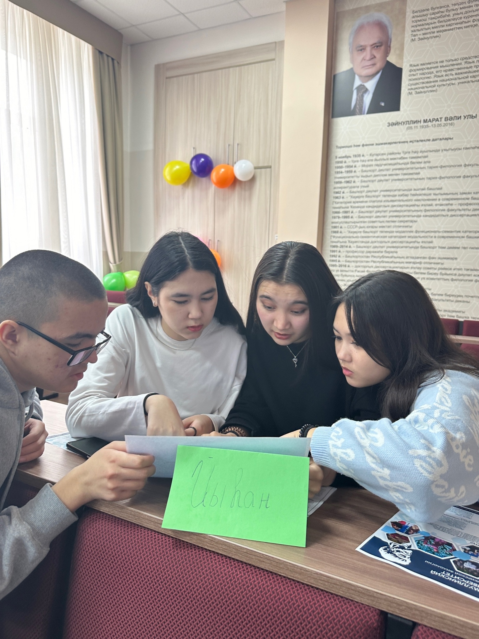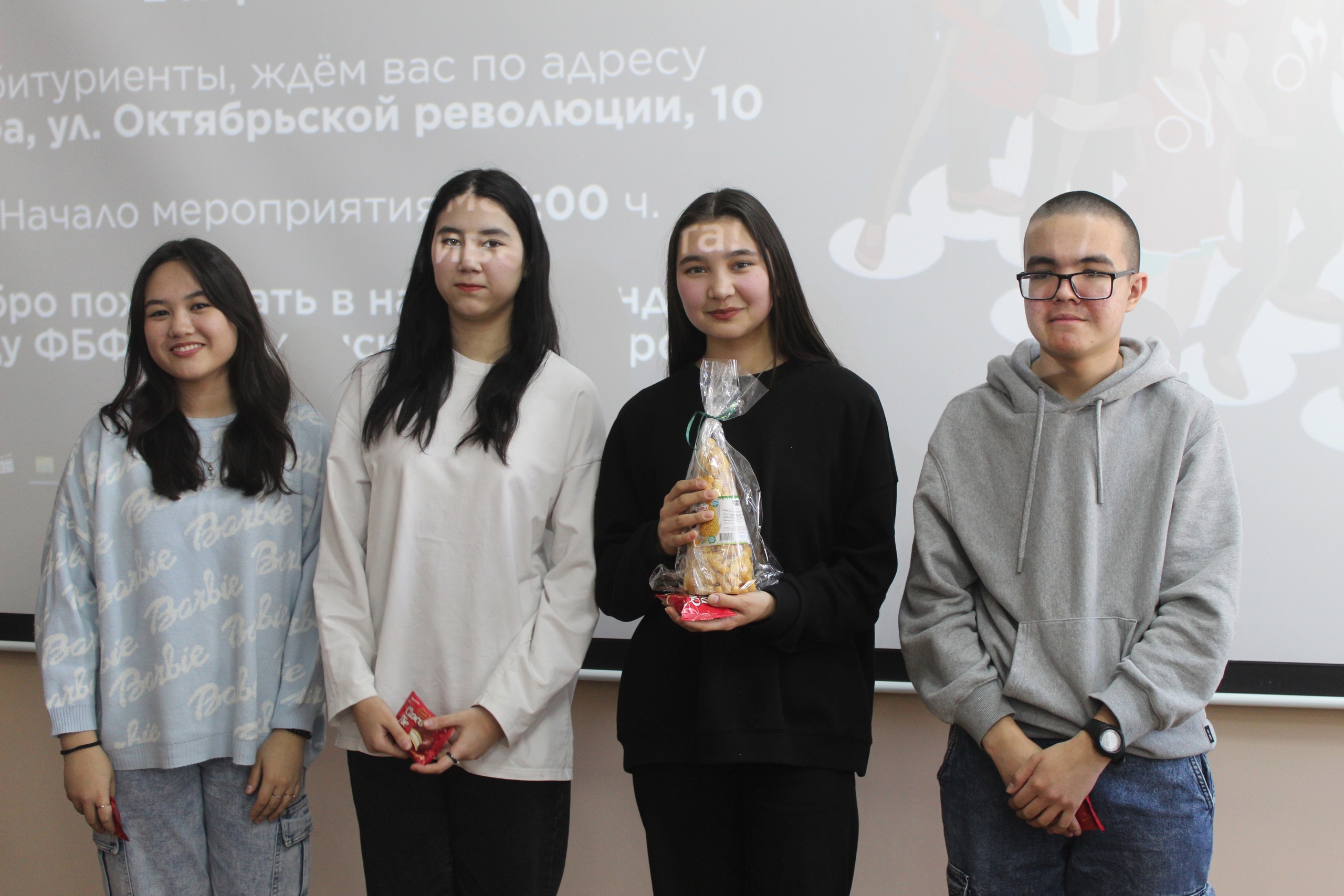 Всем абитуриентам больше всего понравилась квиз-игра, подготовленная студентами-практикантами  4 курса Айгузель Муртаевой и Ильяной Нафиковой. Они провели увлекательную квиз-игру «Башҡорт теле – дуҫлыҡ теле» («Башкирский язык – язык дружбы»). Разделившись на четыре команды, игру начали с определения названия и команды и его командира: так образовались команды «Беренселәр», «Йыһан», «Сварщики», «Ровные пацаны». Судьями выступали Лилия Шигапова, Гульшат Сабирова и Наркас Камалетдинова. Первый раунд игры был посвящен викторине, где всего было 4 блока вопросов, каждый из которых касался башкирского языка и нашей Республики. Во втором раунде командам необходимо было работать с пословицами и поговорками на башкирском языке. А третьим раундом выступила  всеми известная и любимая игра «Угадай мелодию». Ребята каждый раунд проходили смело и уверенно, получали много положительных эмоции, увлеченно обсуждали задания, много смеялись и радовались в этот день!
