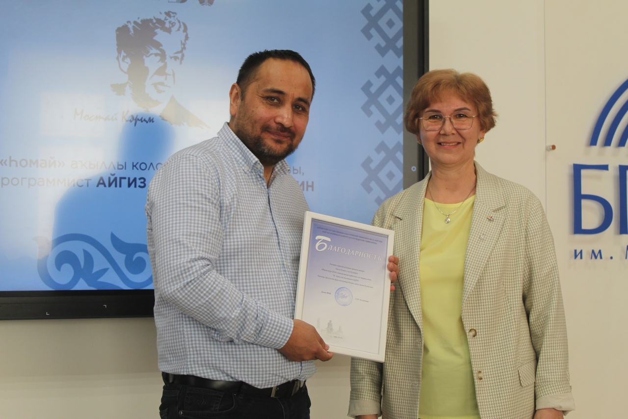Отрадно отметить, что призеры конкурса Кутлубаева Айлина (2 курс, ФБФ), Ишмурзина Наркас (1 курс, ФБФ) и Аминева Зульфия (4 курс, ФБФ) получили подарки от Фонда Мустая Карима. А победителю конкурса Камилю Рахмангулову Айгиз Кунафина, автор проекта, вручил умную колонку «Хомай».