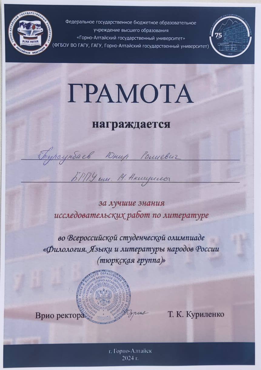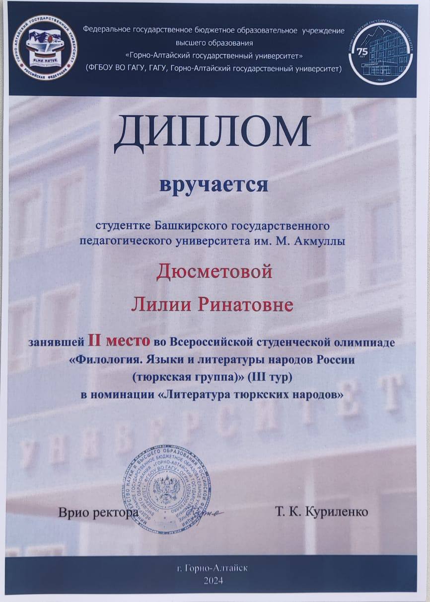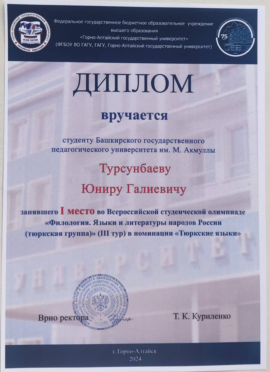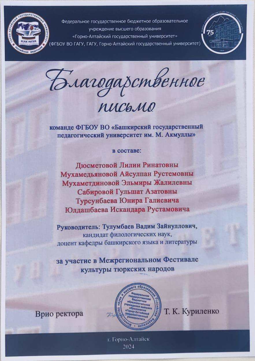 Олимпиада дала возможность студентам со всей России продемонстрировать владение языками тюркской группы. Команда факультета башкирской филологии выражает благодарность руководству Акмуллинского университета и Горно-Алтайского государственного университета за предоставленную возможность.