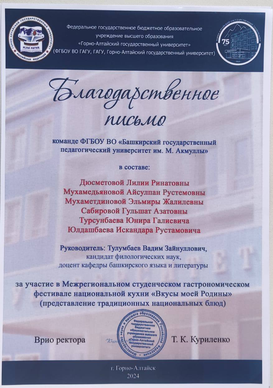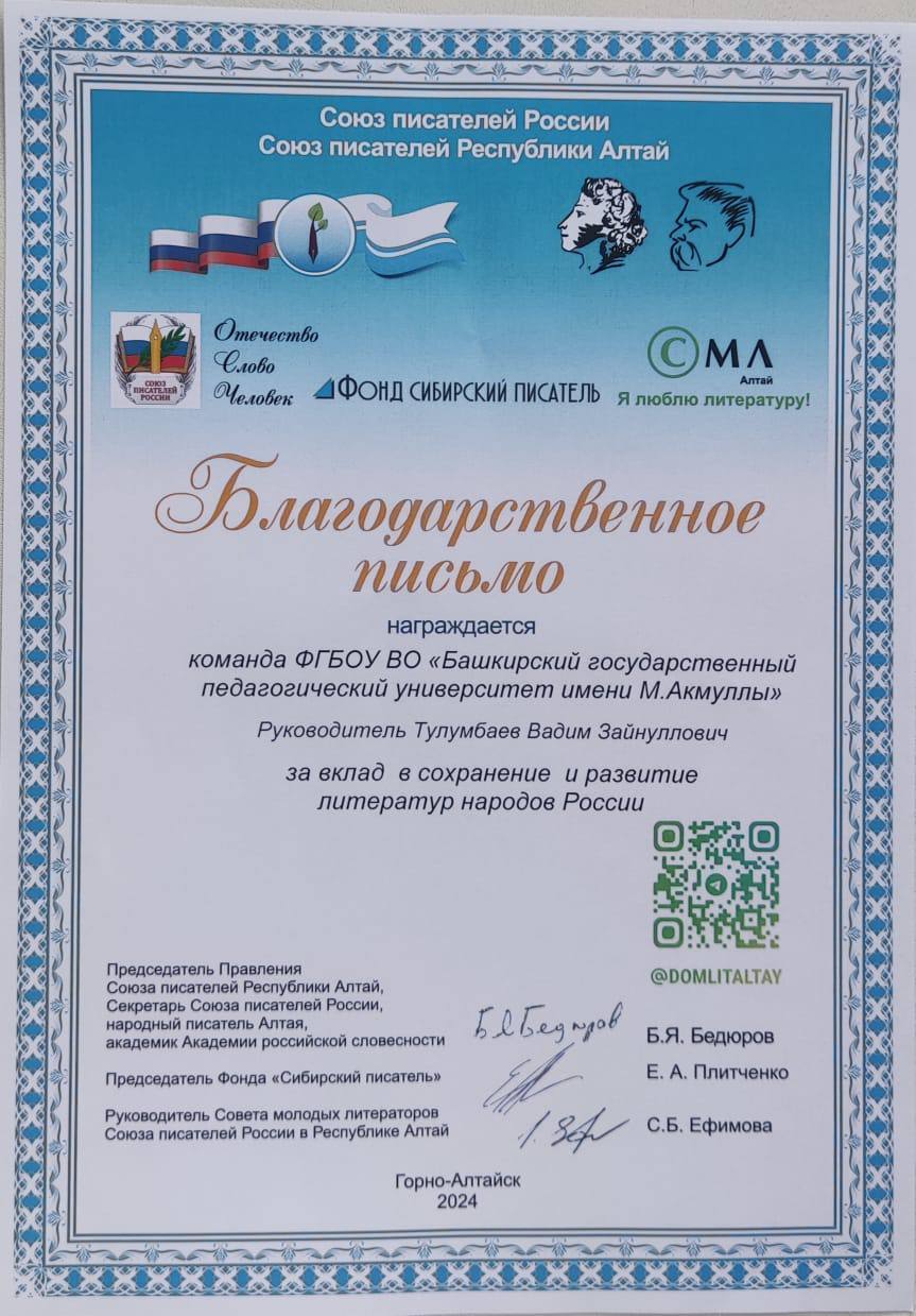 Также команда факультета башкирской филологии БГПУ имени М. Акмуллы была награждена грамотами в номинациях: