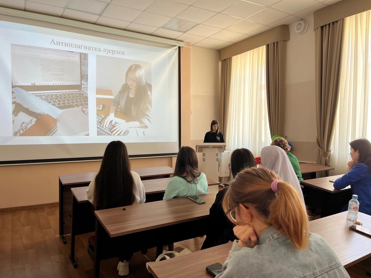 Отчётная конференция проводилась в формате презентации, доклада и обсуждений итогов. Были представлены цели, задачи и результаты работ. Особое внимание студентами было уделено оформлению выпускной квалификационной работы по требованиям и её подготовка к прохождению проверки в системе антиплагиат. Руководителем практики к.ф.н., доц. Рахимовой Э. Ф. были подведены итоги по деятельности каждой группы. Таким образом, преддипломная практика, как отмечают студенты, послужила отличной подготовкой к будущей профессиональной деятельности и к защите дипломной работы.