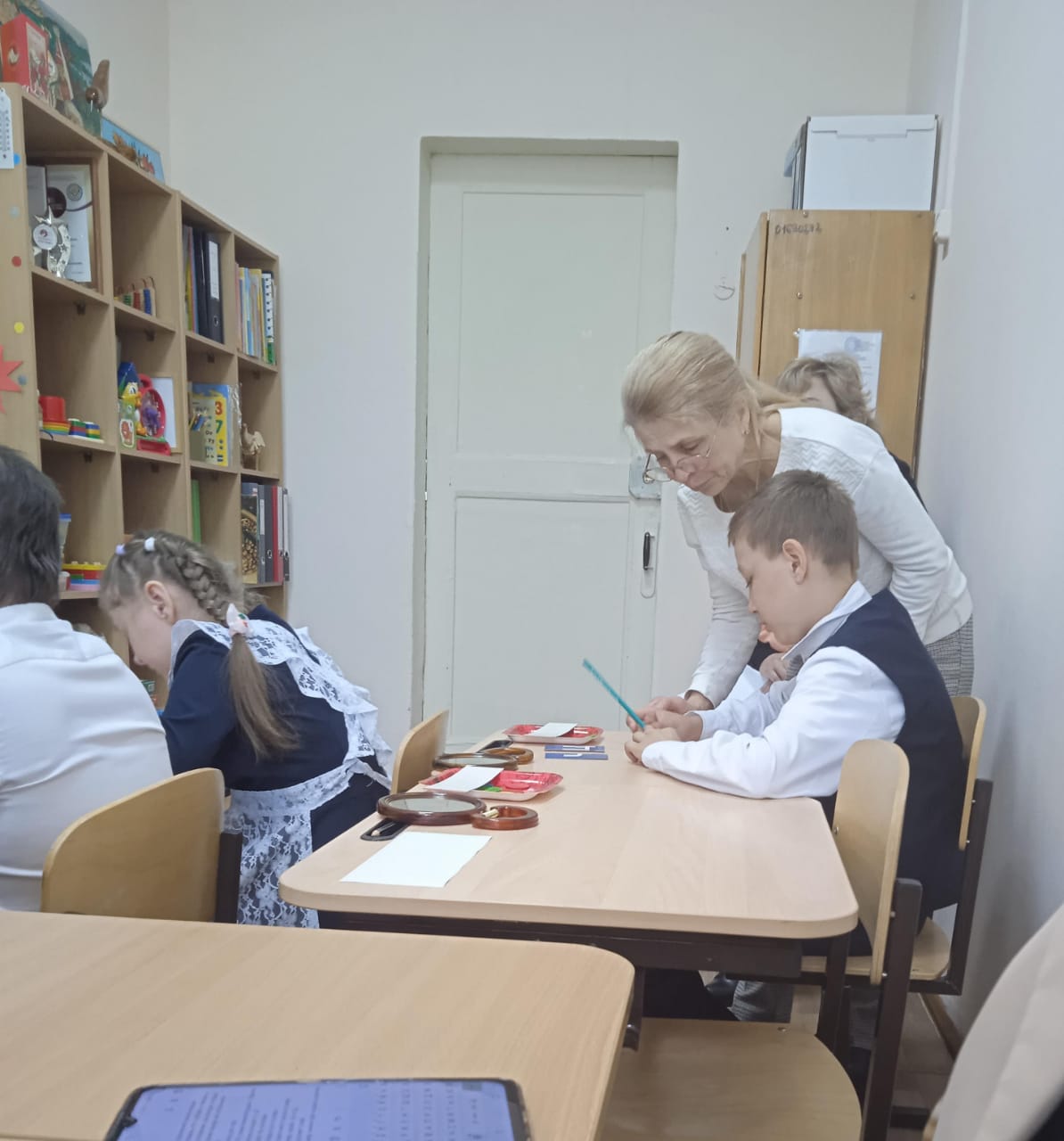 Далее студенты познакомились с педагогами школы, которые показали им специфику проведения уроков, коррекционных психологических и коррекционных занятий с детьми с интеллектуальными нарушениями. Студенты были разделены на две группы и посетили по одному уроку в начальных классах по предметам "Мир природы и человека" и "Речевая практика" (учителя нач. классов Турубар Ю.В. и Сагитова А.С.), логопедические занятия учителей логопедов школы-интерната  по дифференциации звуков и букв "ж-ш" и "ч-щ" , которые проводили Мугазирова Л.М. и Шеховцева М.А. Психокоррекционные занятия с детьми провели педагог-психолог школы Акбердина И.Ф. и учитель психокоррекционных занятий Царева Н.Г. После просмотра всех занятий Ибрагимова Т.Ю. провела со студентами рефлексию по результатам увиденного, подвела итоги.