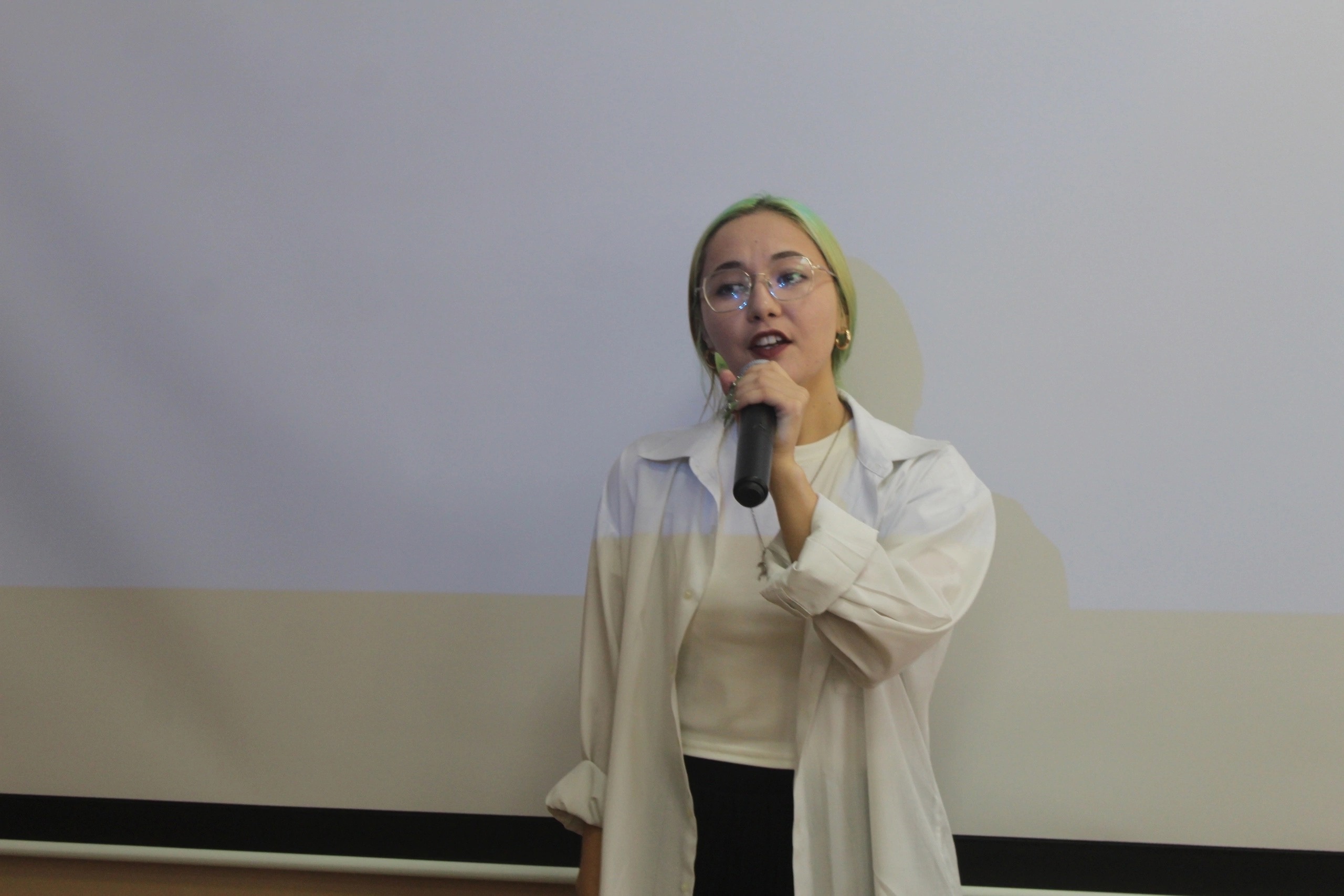 Председатель студенческого совета Дюсметова Лилия от имени всего студенческого актива пожелала первокурсникам найти себя и свое призвание, всегда попробовать что-то новое для себя и не упускать возможности, но отметила, что учеба должна быть на первом месте.