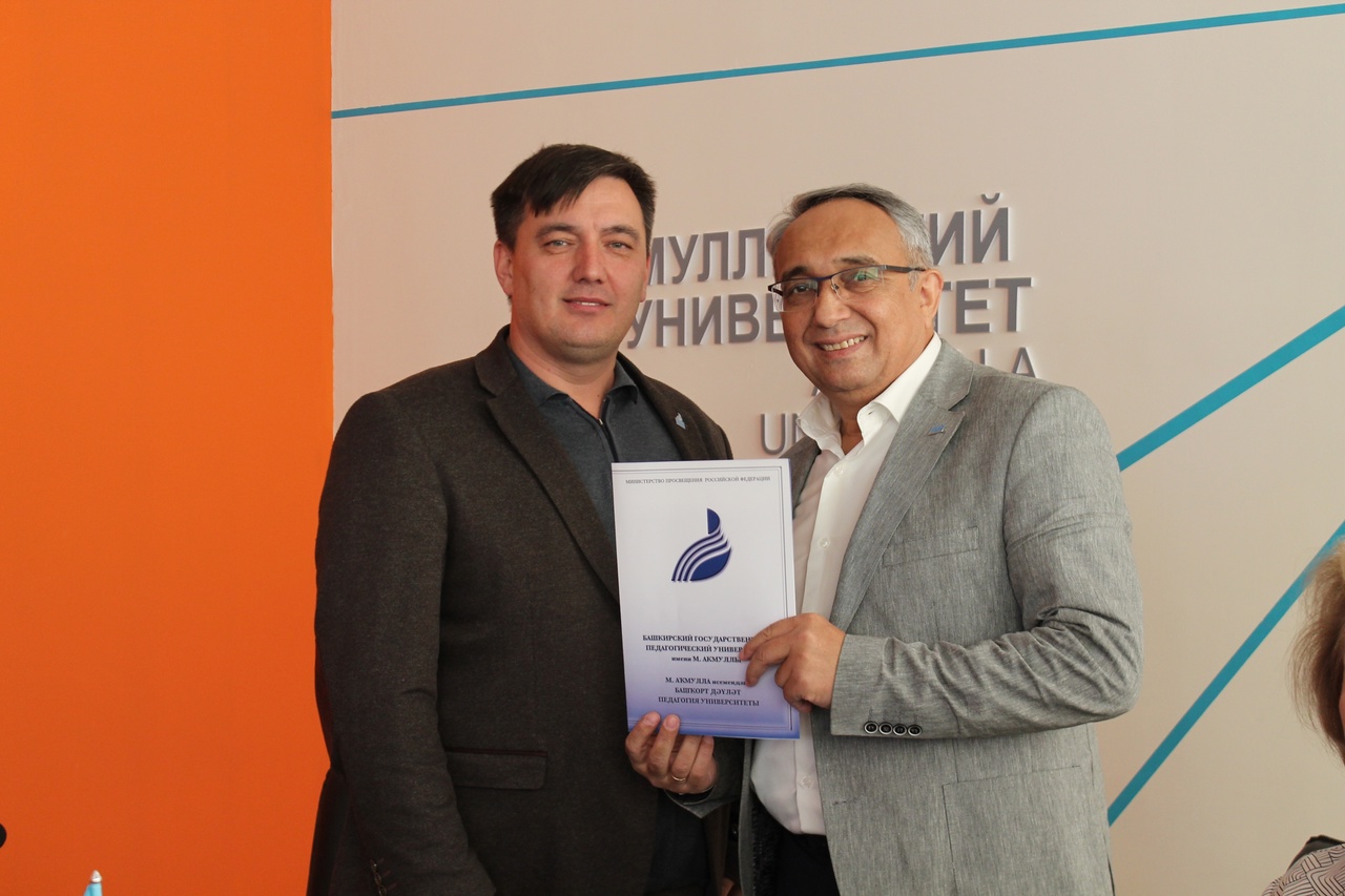От имени коллектива БГПУ им. М. Акмуллы и ректора Акмуллинского университета прочитал передал поздравления юбиляру проректор по молодежной политике и международным связям Юлбаев Радик Зинатович.