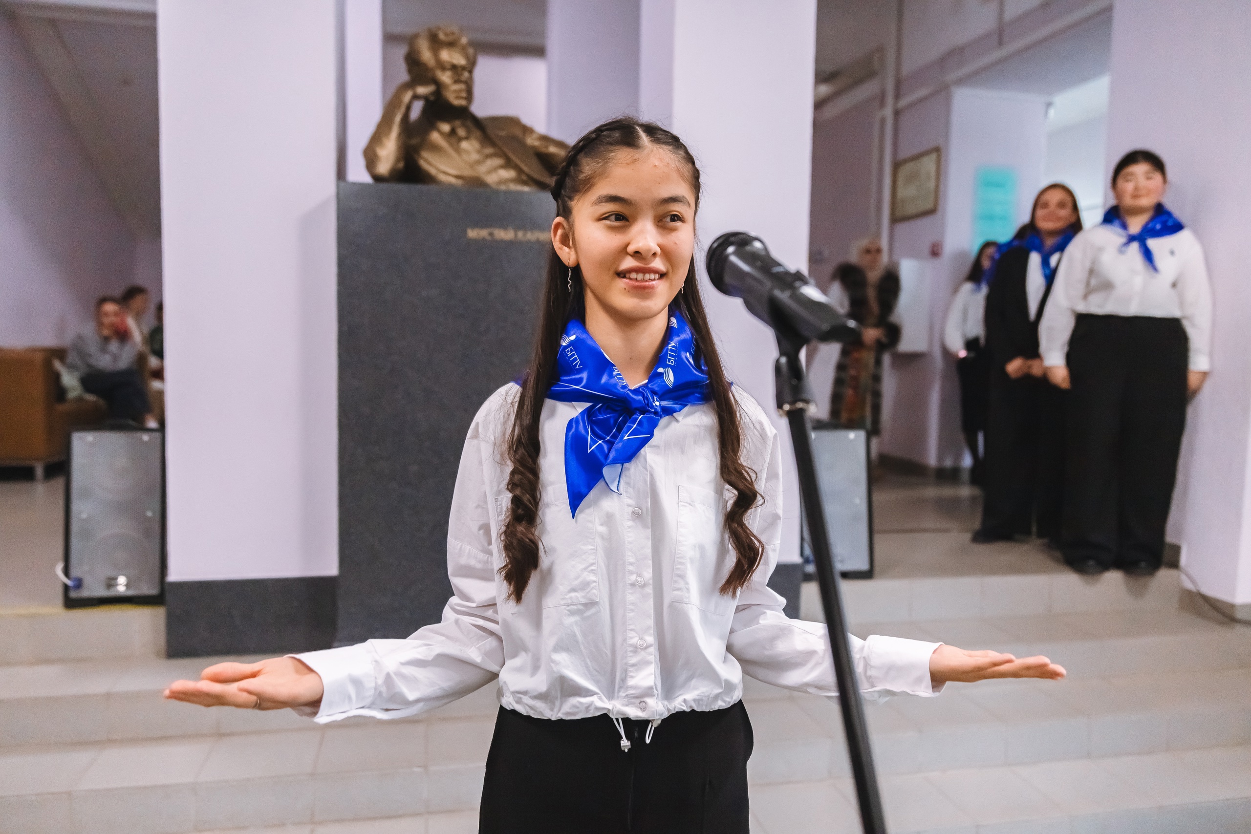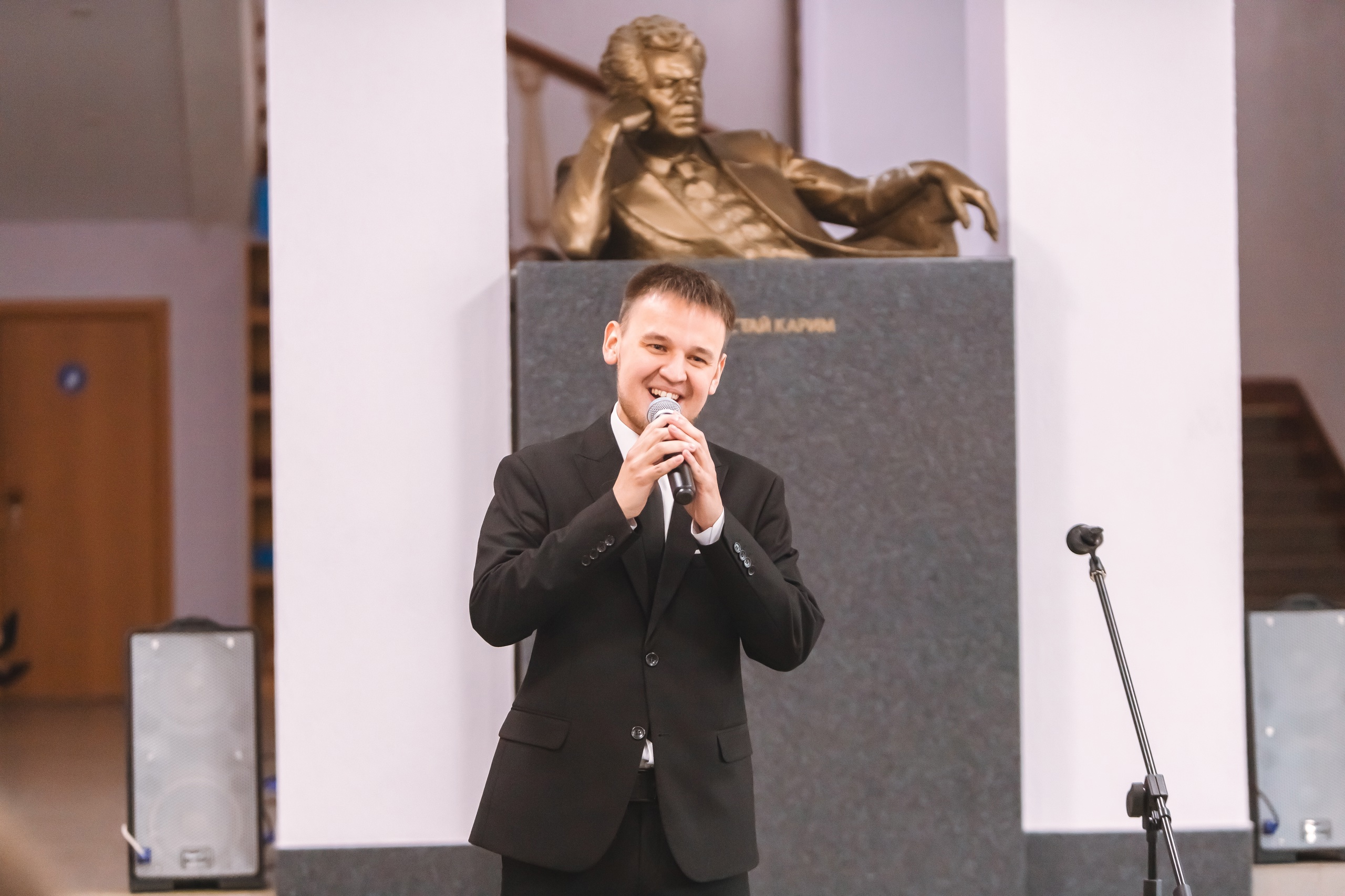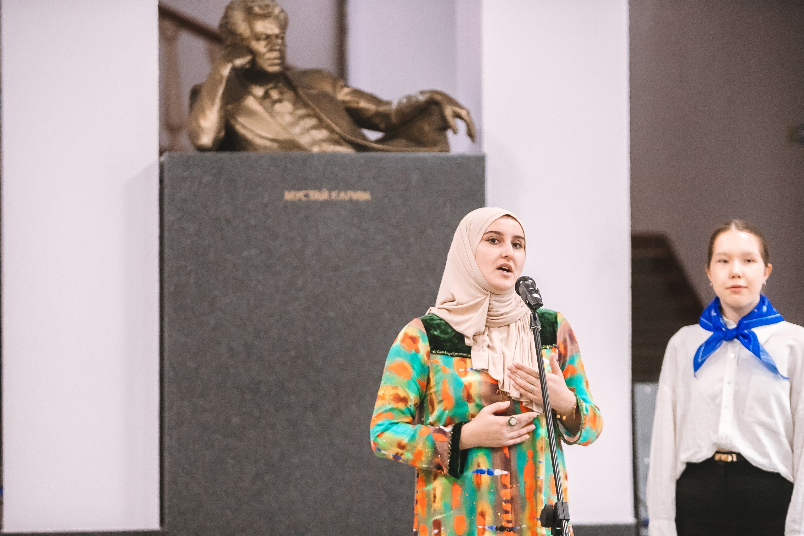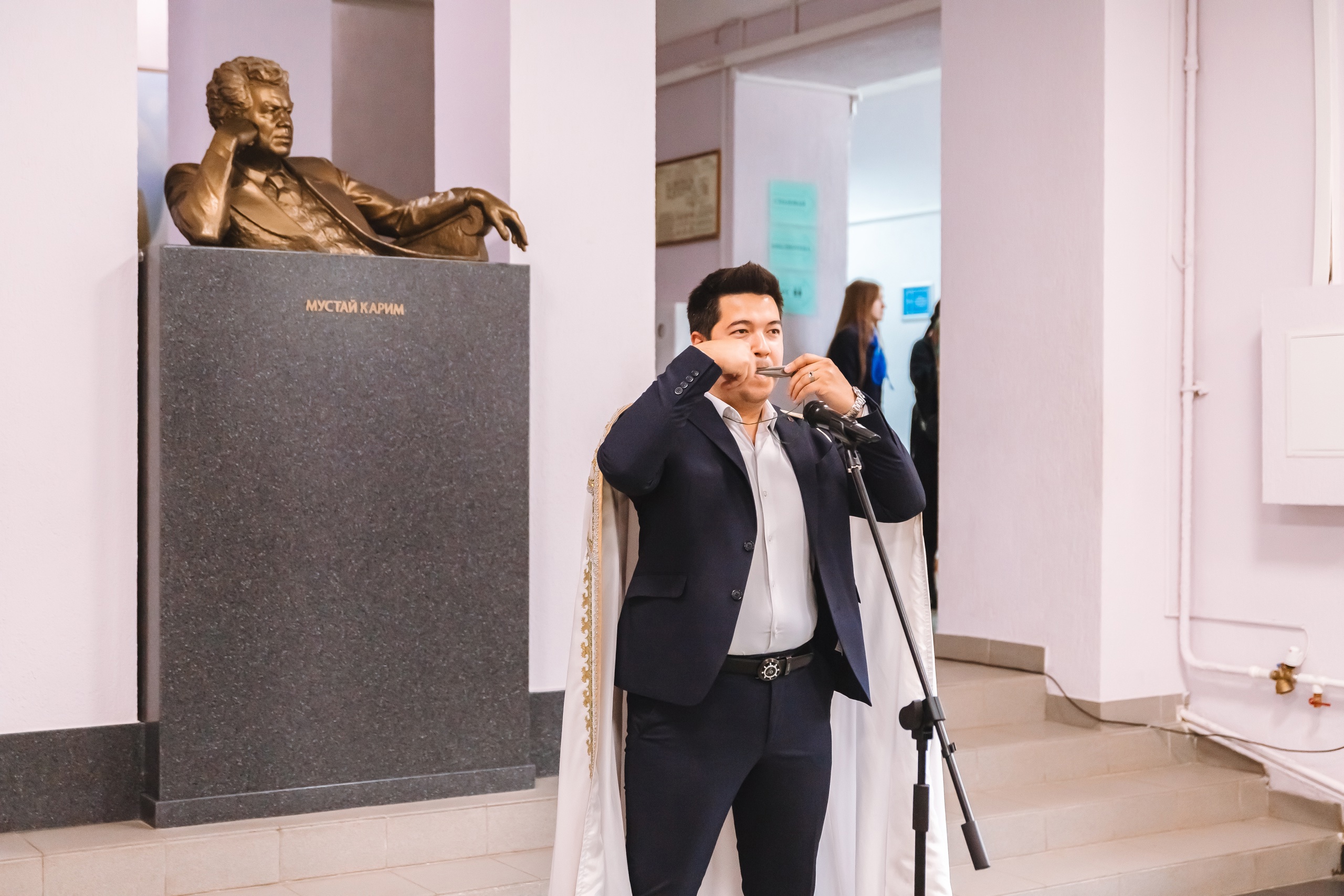 В фойе 3 учебного корпуса, около бюста М.Карима состоялся творческий вечер. Студенты Акмуллинского университета исполняли стихи и отрывки из прозаических произведений Мустая Карима на русском, башкирском, татарском, таджикском языках и языке жестов, пели, танцевали, играли на народных инструментах. Их творческие номера помогли увидеть, как универсально и многогранно творчество великого башкирского поэта.
