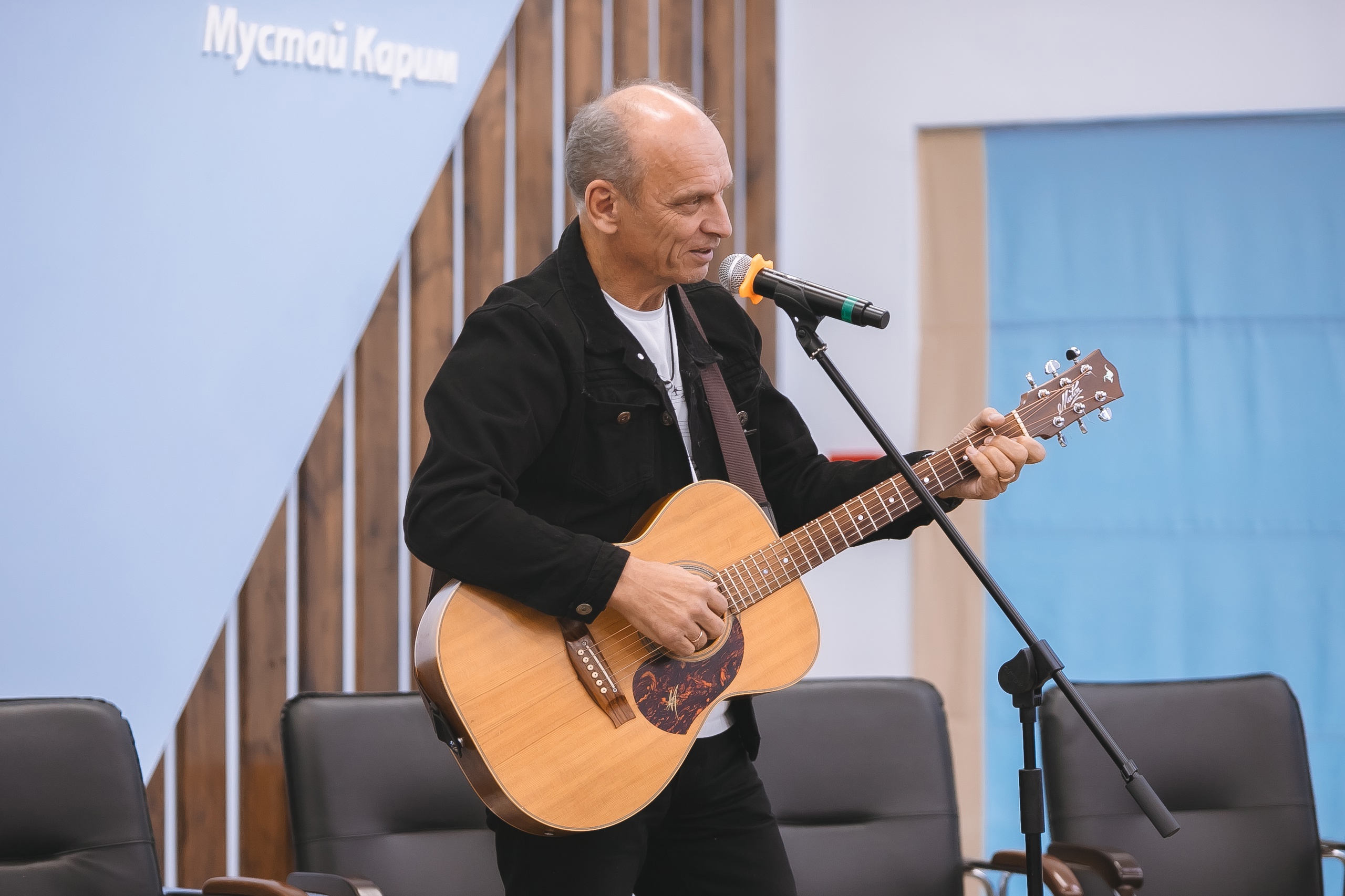 Открывая встречу, Салават Сагитов рассказал о том, как при содействии РГО кавказскому пику было присвоено имя Мустая Карима и как создавалась «Тропа поэтов».