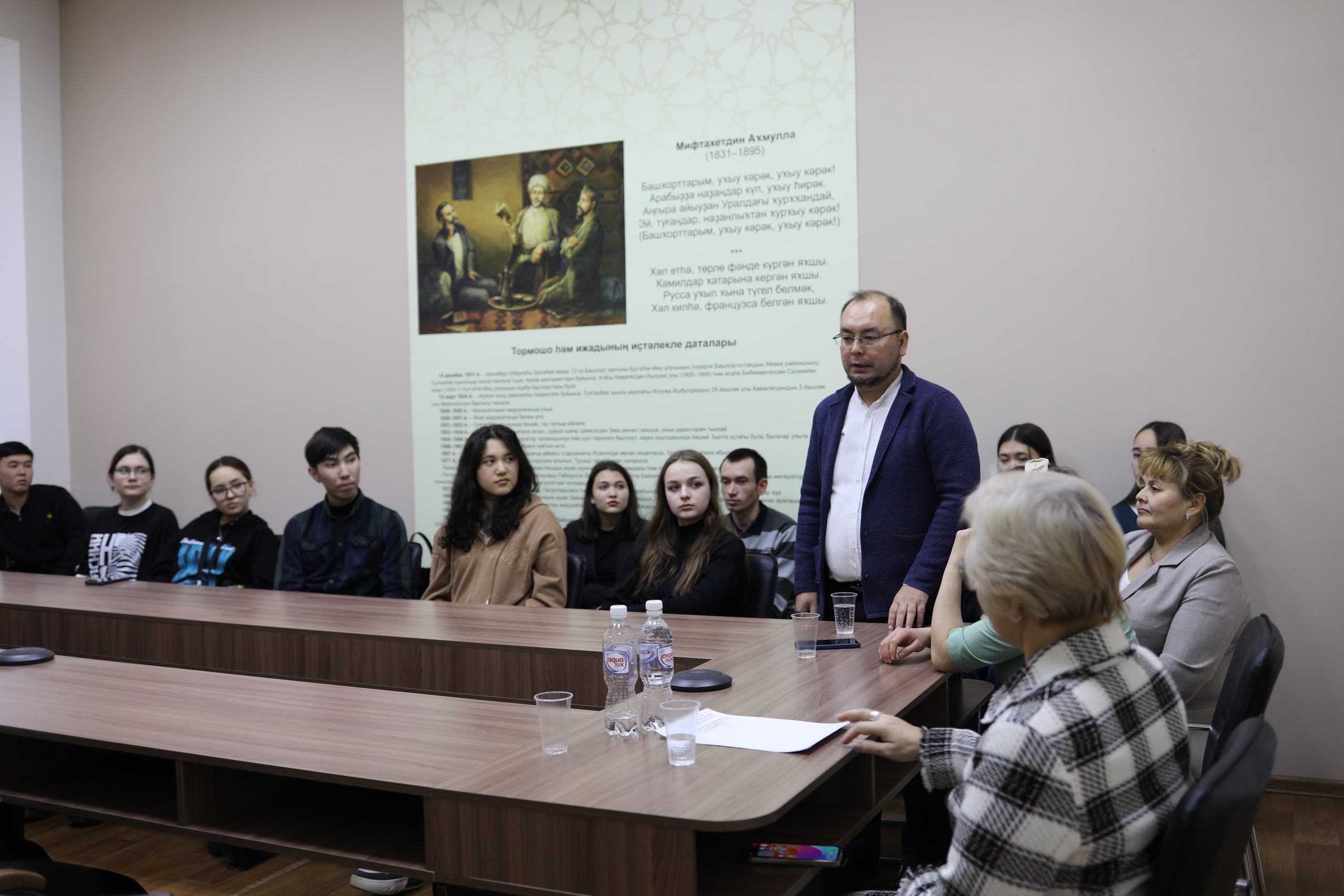 Ведущими встречи стали студенты факультета башкирской филологии гр. ПОАЯ -ВЯ-21-23 Хисамиева Карина и Биембетова Азалия.
