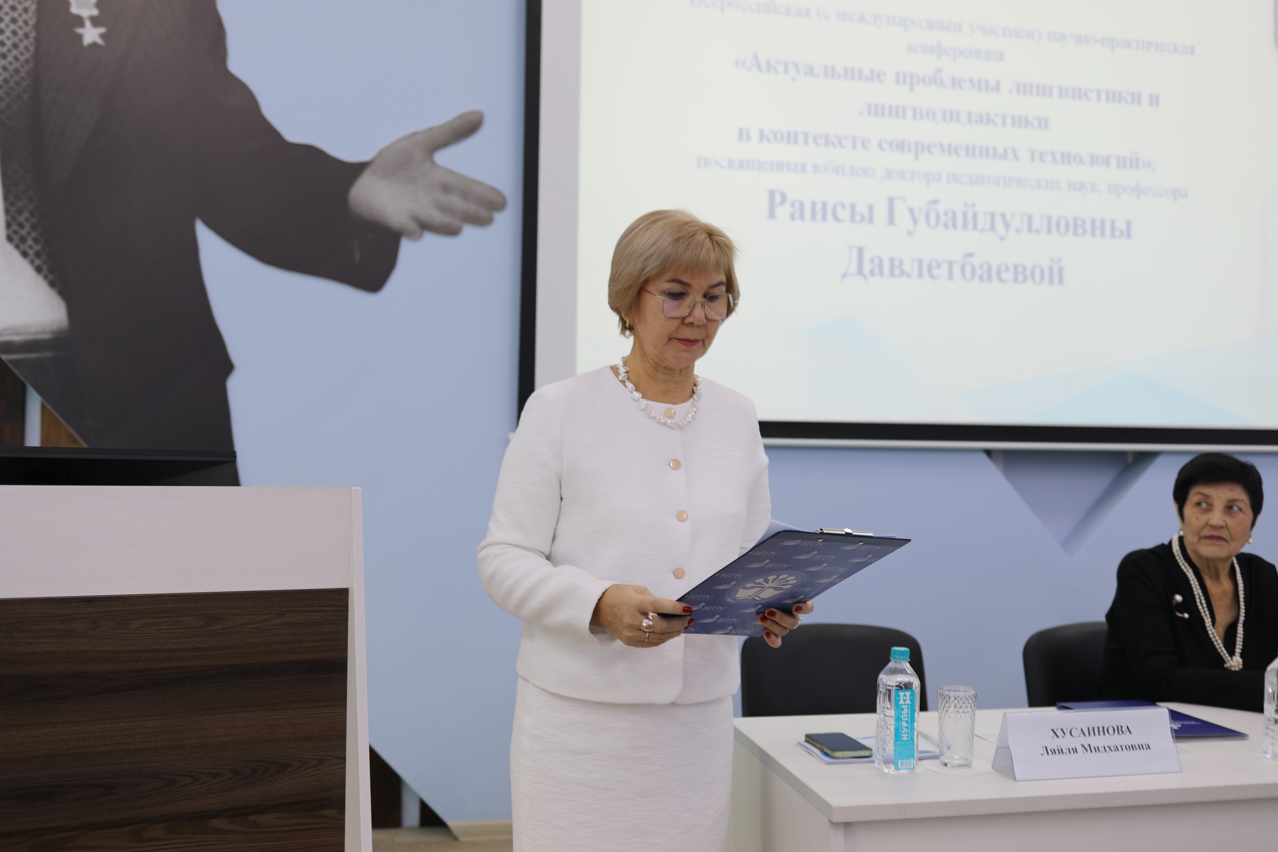 В рамках Национального педагогического форума 28 ноября 2024г. состоялась Всероссийская научно-практическая конференция с международным участием «Актуальные проблемы лингвистики и лингводидактики в контексте современных подходов к образованию» посвященная 85-летию доктора педагогических наук, профессора, Почетного работника высшего профессионального образования РФ, Отличника народного просвещения Министерства просвещения РСФСР Давлетбаевой Раисы Губайдулловны.