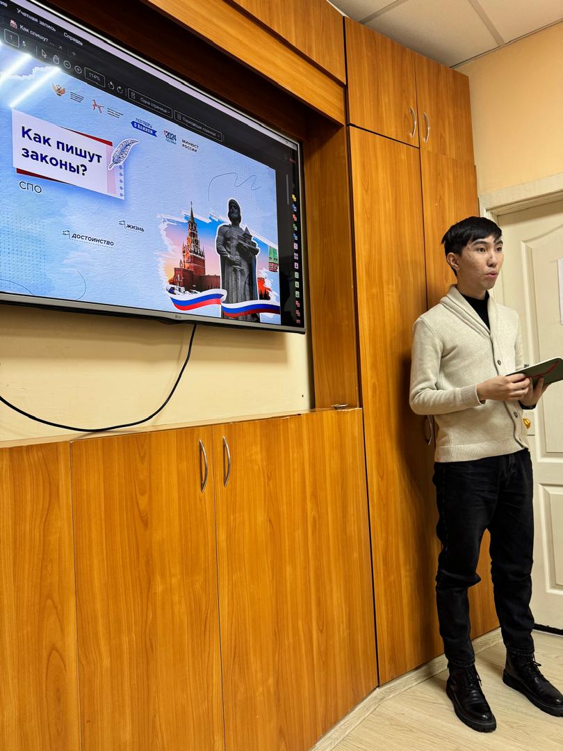Особое внимание было уделено значению правовой грамотности и активного участия граждан в законодательном процессе. Студенты задавали вопросы, делились своими мыслями и мнениями, что сделало разговор живым и интерактивным.
