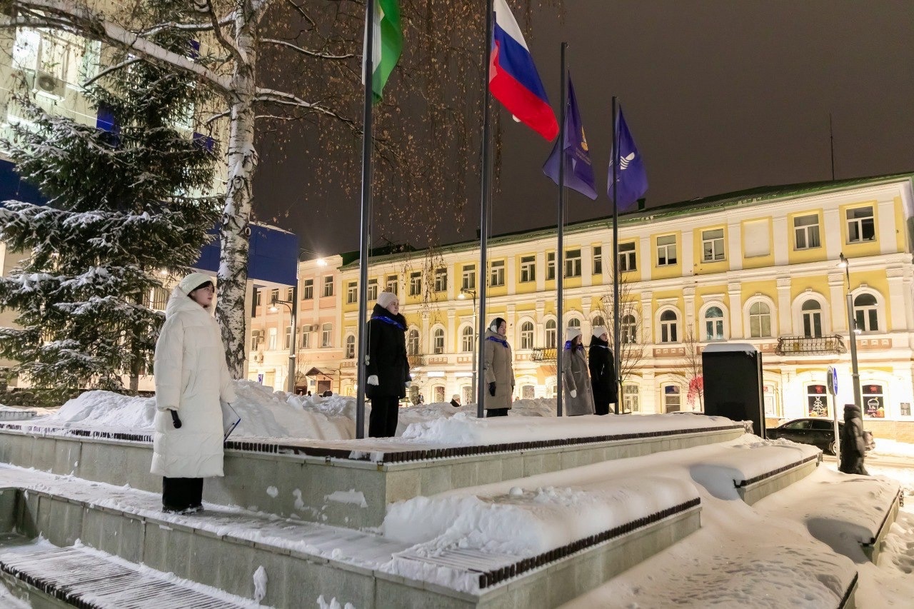 23 декабря на площади перед Акмуллинским университетом прошла традиционная церемония поднятия государственных флагов Российской Федерации, Республики Башкортостан, Министерства просвещения Российской Федерации и Акмуллинского университета. В этом значимом мероприятии приняли участие студенты и преподаватели факультета башкирской филологии.